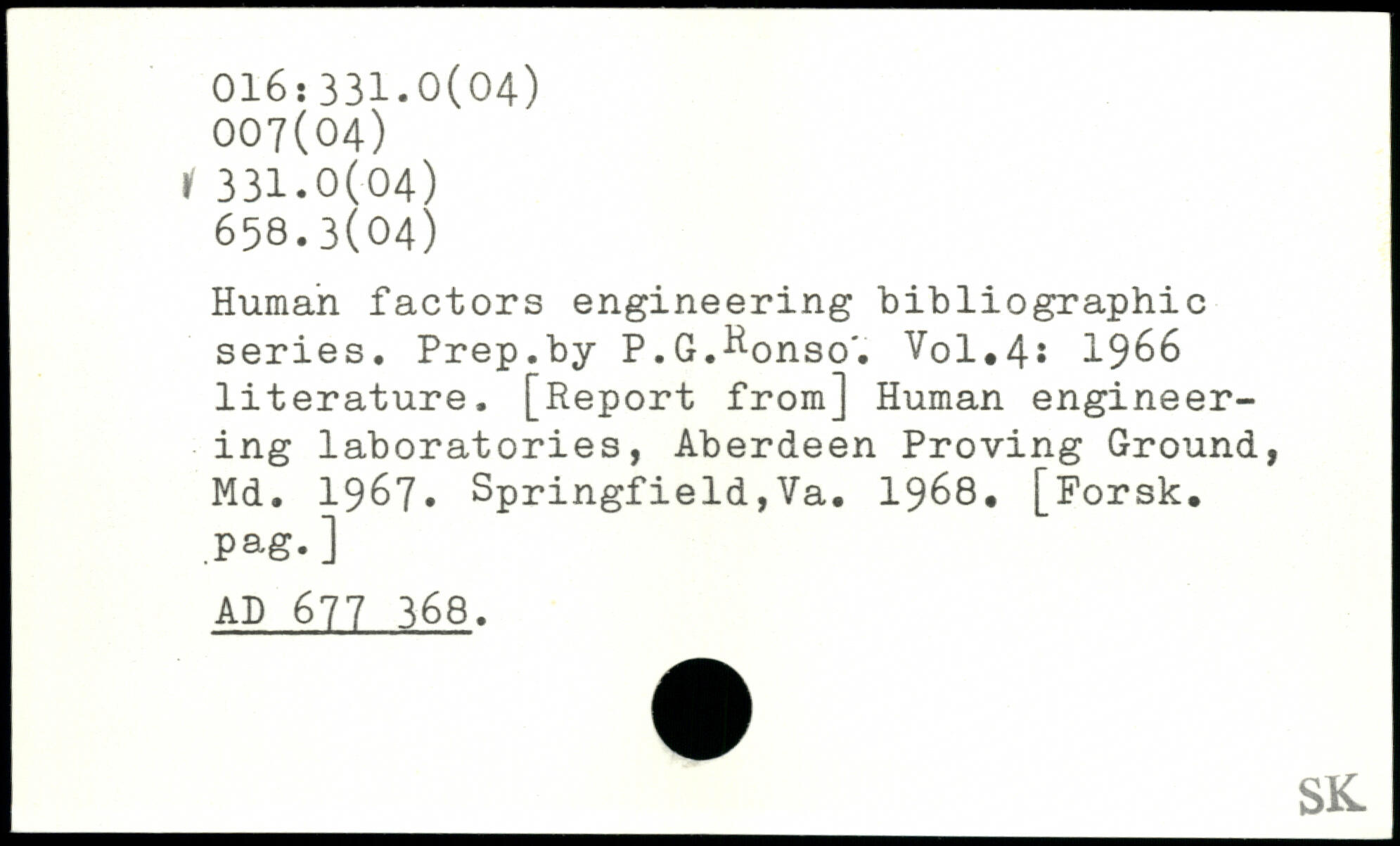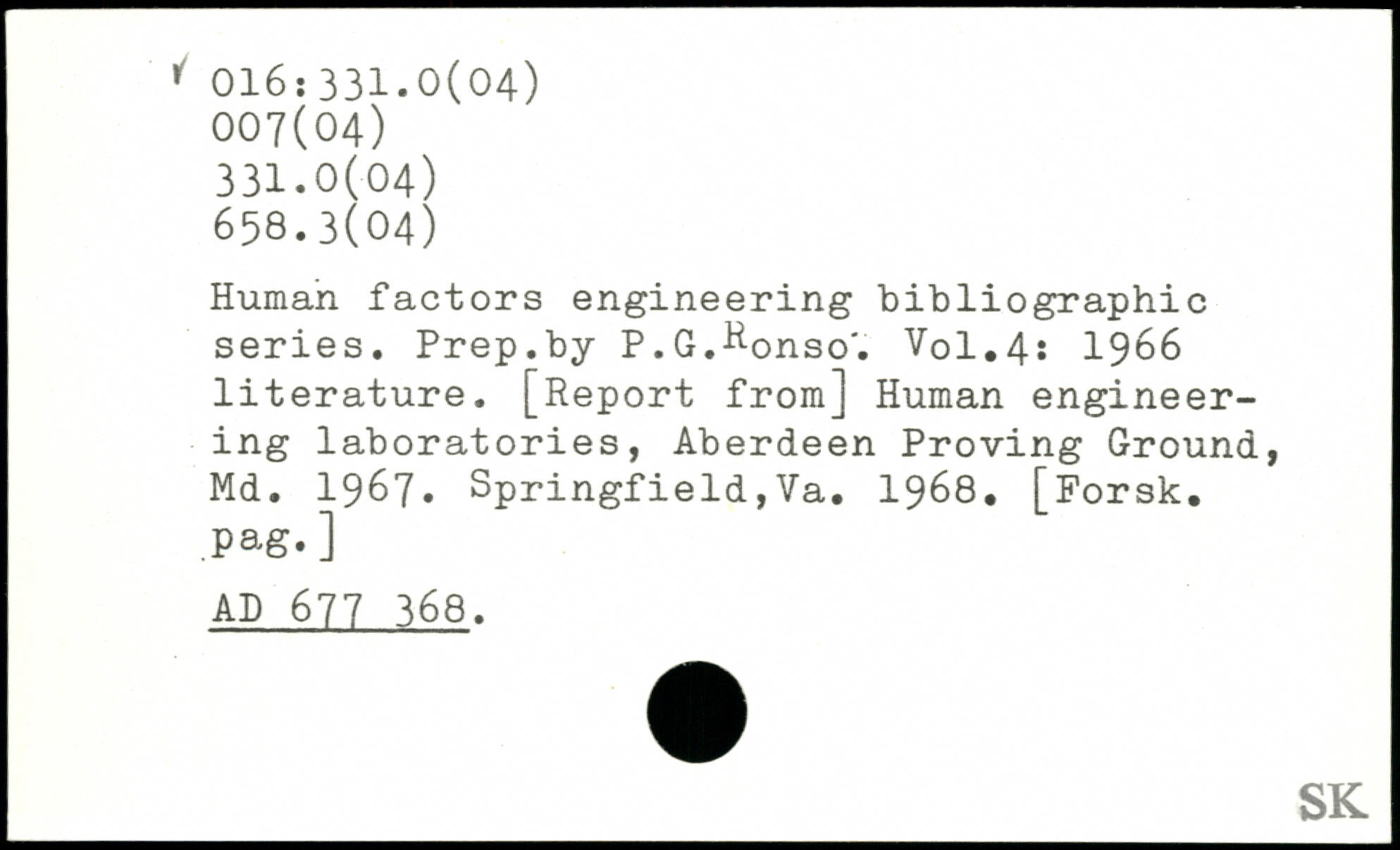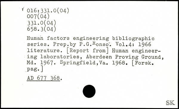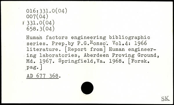 Human factors engineering bibliographic series. Prep.by P.G.^onso'.