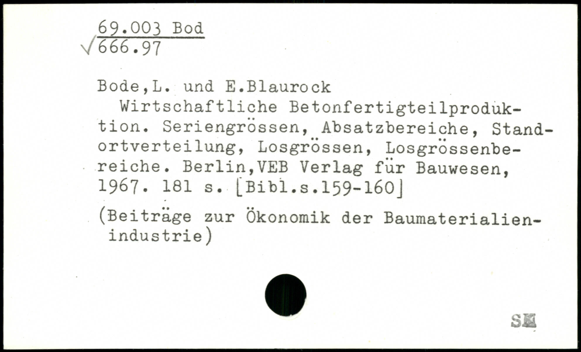 Wirtschaftliche Betonfertigteilproduk-tion. Seriengrössen, Absatzbereiche, Standortverteilung, Losgrössen, Losgrössenbereiche.