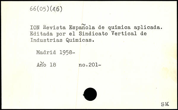 ION Revista Espanola de quimica aplicada. Editada por el Sindicato Vertical de Industrias Quimicas.