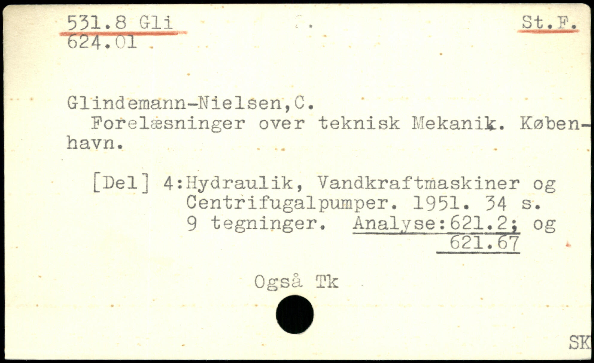 ' ' Glindemarm-Nielsen, C. Forelæsninger over teknisk Mekanik. København. ... [Del] 4:Hydraulik, Vandkraftmaskiner og Centrifugalpumper. 1951.