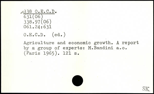 Agriculture and economic growth. A report by a group of experts: M.Bandini a.o. (