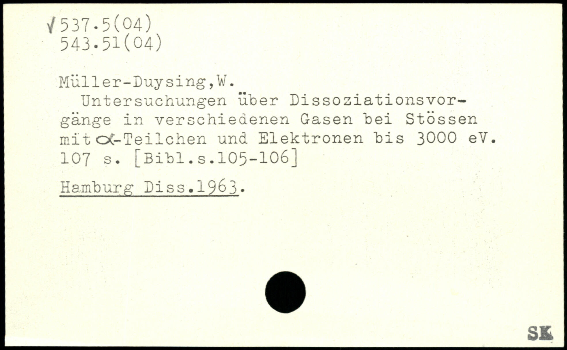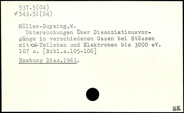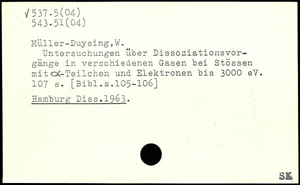 Untersuchungen über Dissoziationsvorgänge in verschiedenen Gasen bei Stössen mit oC-Teilchen und Elektronen bis 3000 eV.
