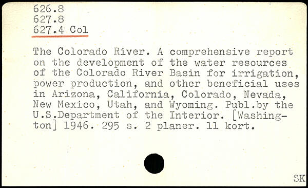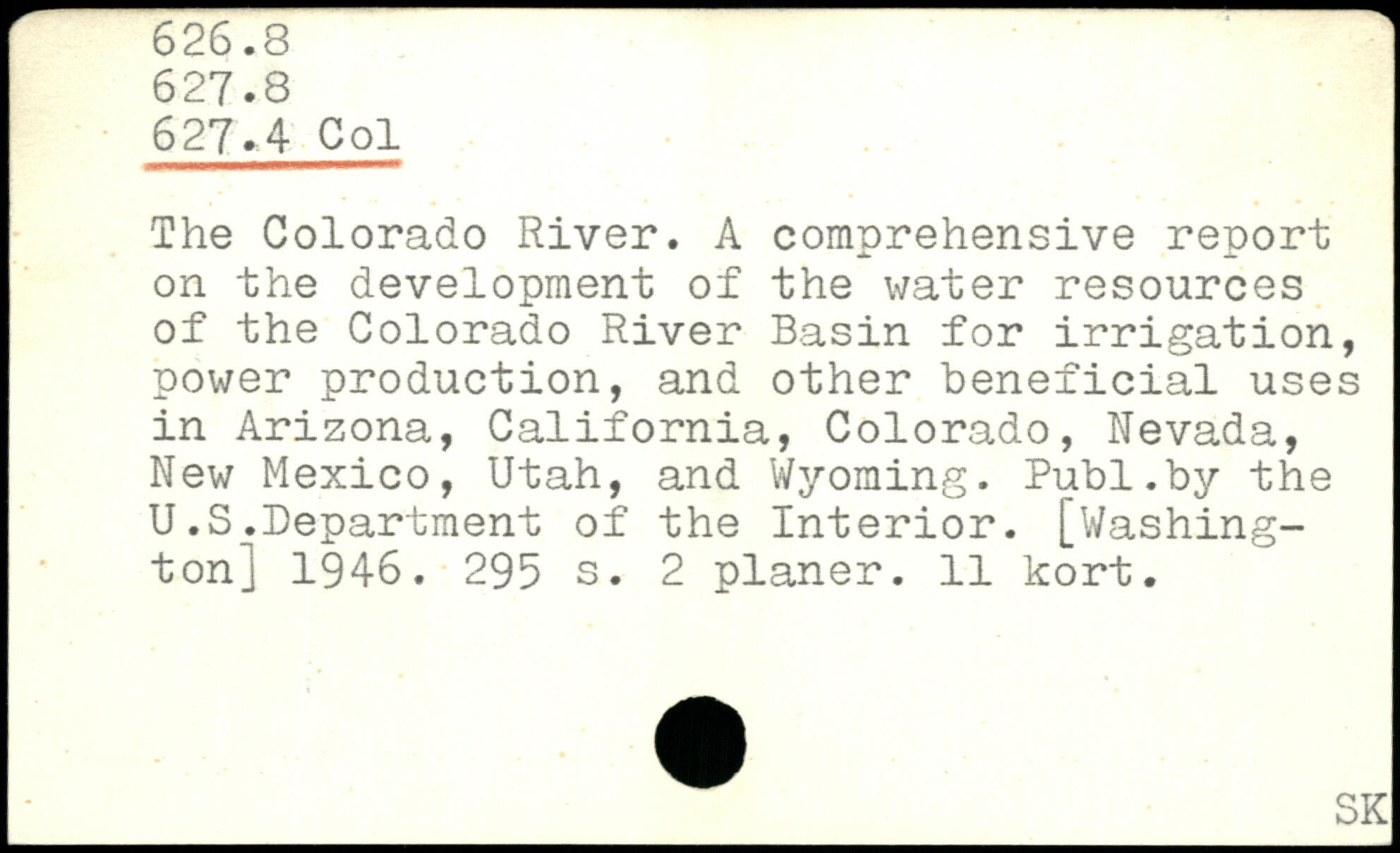 The Colorado River. A comprehensive report on the development of the water resources of the Colorado River Basin for irrigation, power production, and other beneficial uses in Arizona, California, Colorado, Nevada, New Mexico, Utah, and Wyoming.