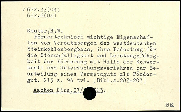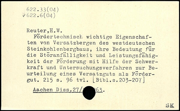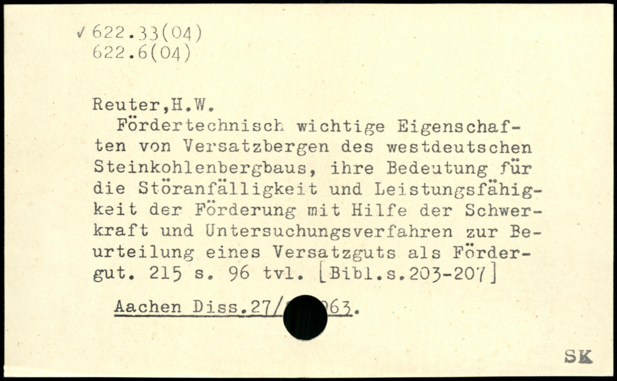 FÖrdertechnisch wichtige Eigenschaften von Versatzbergen des westdeutschen Steinkohlenbergbaus, ihre Bedeutung für die Störanfälligkeit und Leistungsfähigkeit der Förderung mit Hilfe der Schwerkraft und Untersuchungsverfahren zur Beurteilung eines Versatzguts als Fördergut.