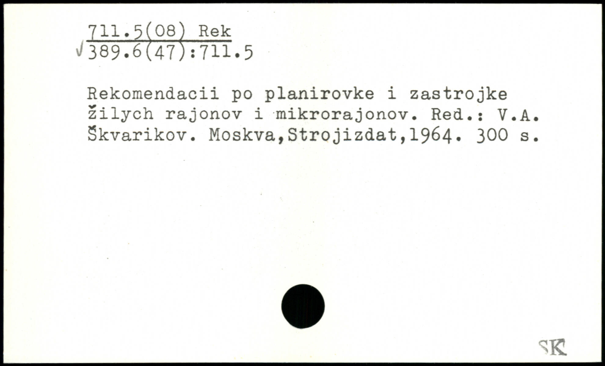Rekomendacii po planirovke i zastrojke zilych rajonov i mikrorajonov. Red.: V.A. Skvarikov.