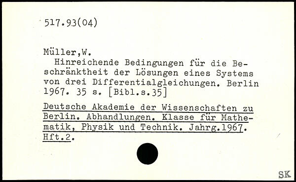 Hinreichende Bedingungen für die Beschränktheit der Lösungen eines Systems von drei Differentialgleichungen.