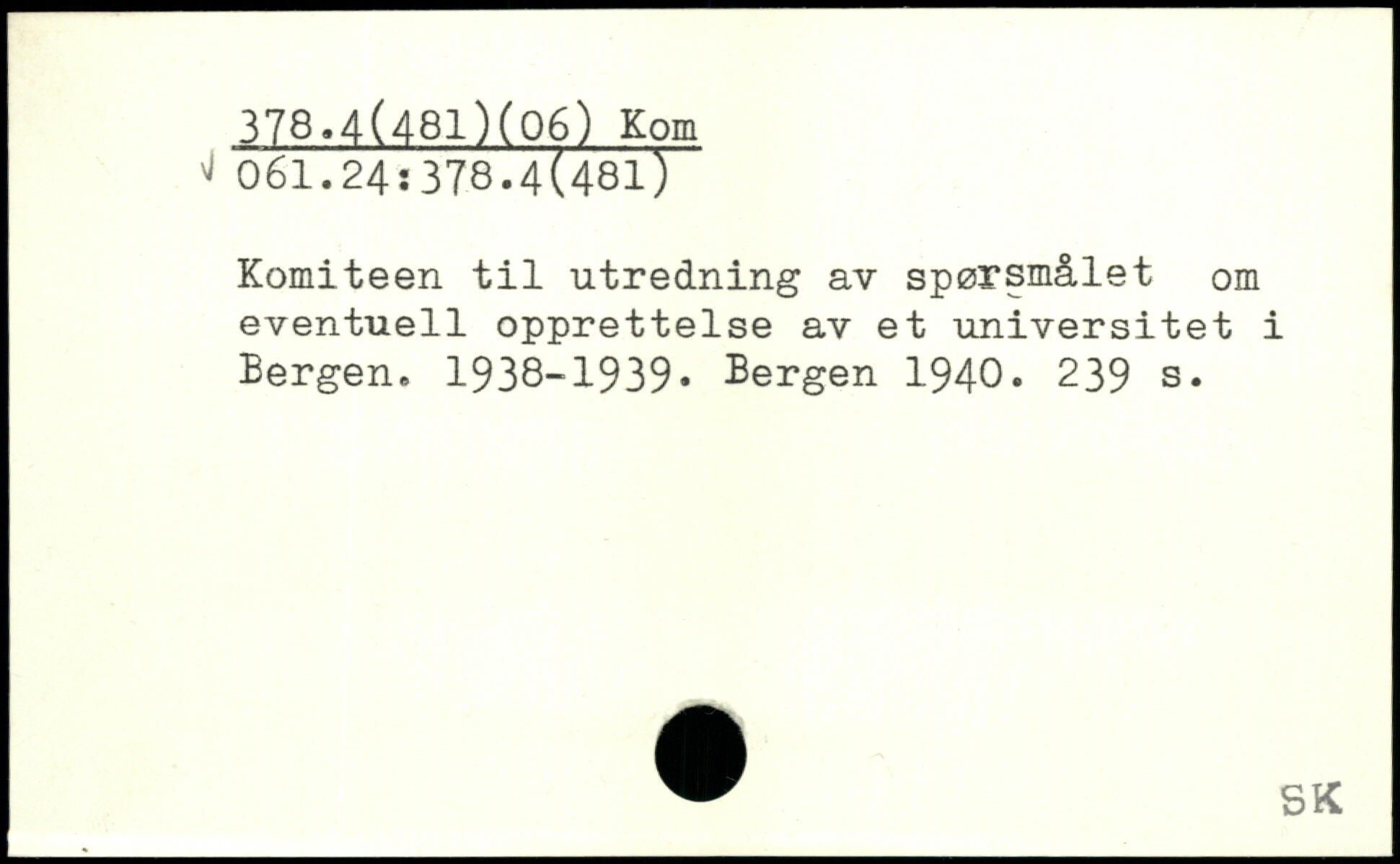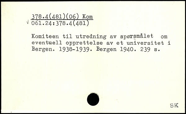 Komiteen til utredning av spørsmålet om eventuell opprettelse av et universitet i Bergen. 1938-1939.