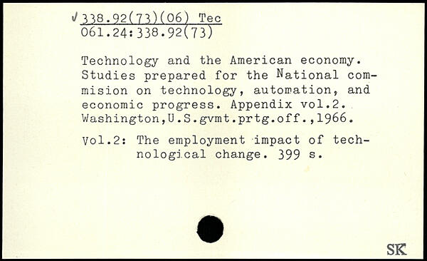 Technology and the American economy. Studies prepared for the National commision on technology, automation, and economic progress. Appendix
