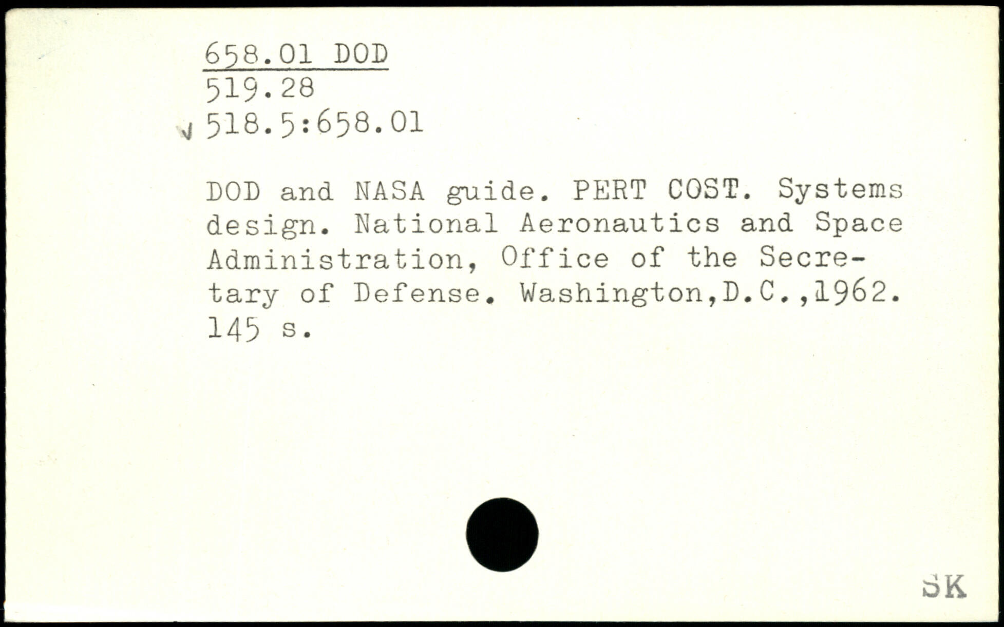 DOD and MSA guide. PERT COST. Systems design. National Aeronautics and Space Administration, Office of the Secretary of Defense. Washington,D.C1962.