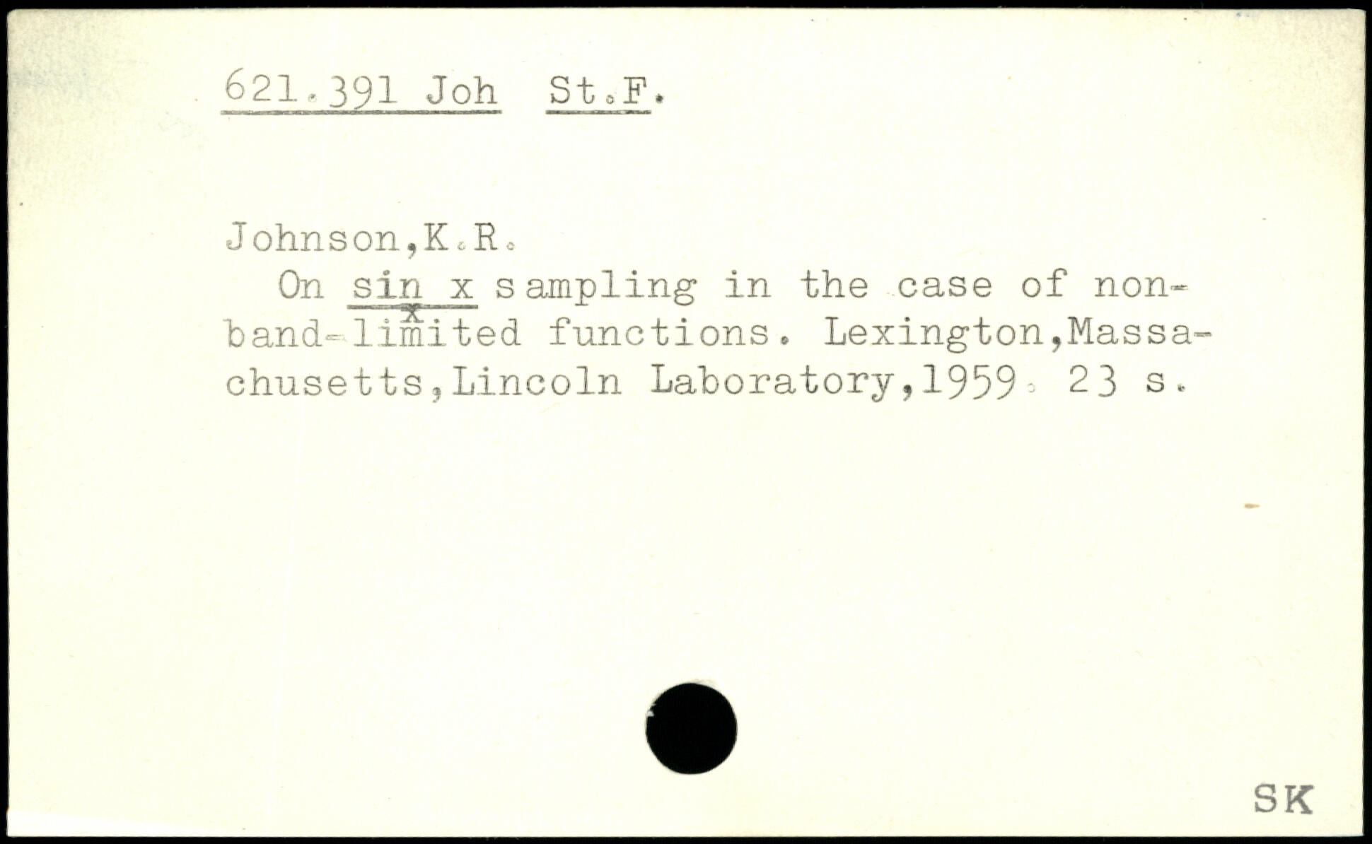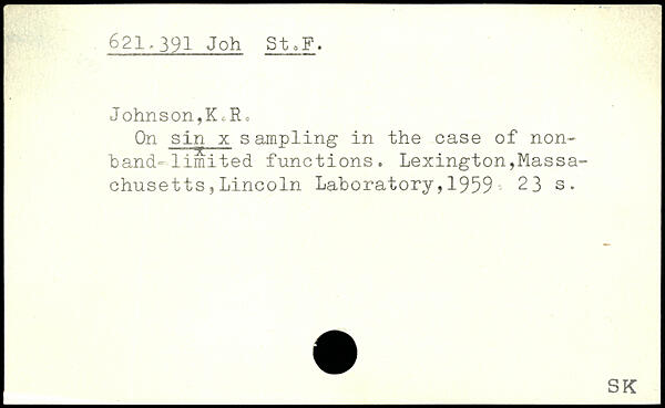 O11 sin x sampling in the case of nonband-limited functions. Lexington,Massachusetts , Lincoln Laboratory,1959, 23 s.