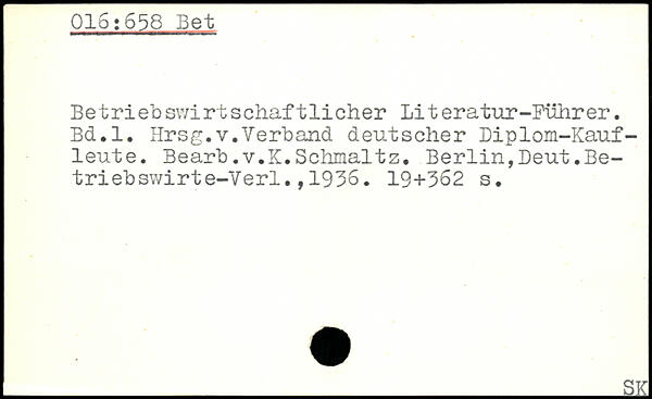 Be triebswirt s chaftli eher Li t eratur-Führer. Bd.l. Hrsg.v.Verband deutscher Diplom-Kauf-leute. Bearb.v.K.Schmaltz. Berlin,Deut.Be-triebswirte-Verl.,1936.