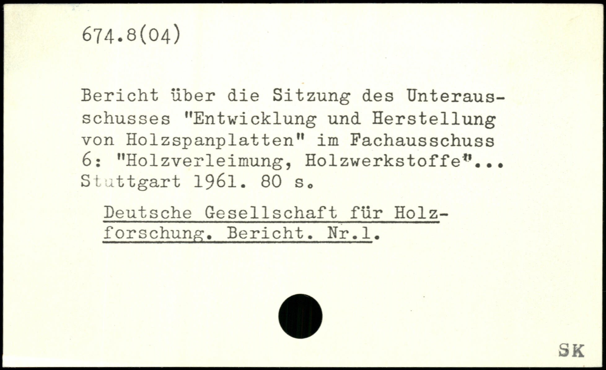 Bericht über die Sitzung des Unterausschusses "Entwicklung und Herstellung von Holzspanplatten" im Fachausschuss 6: "Holzverleimung, Holzwerkstoff e.'. ..