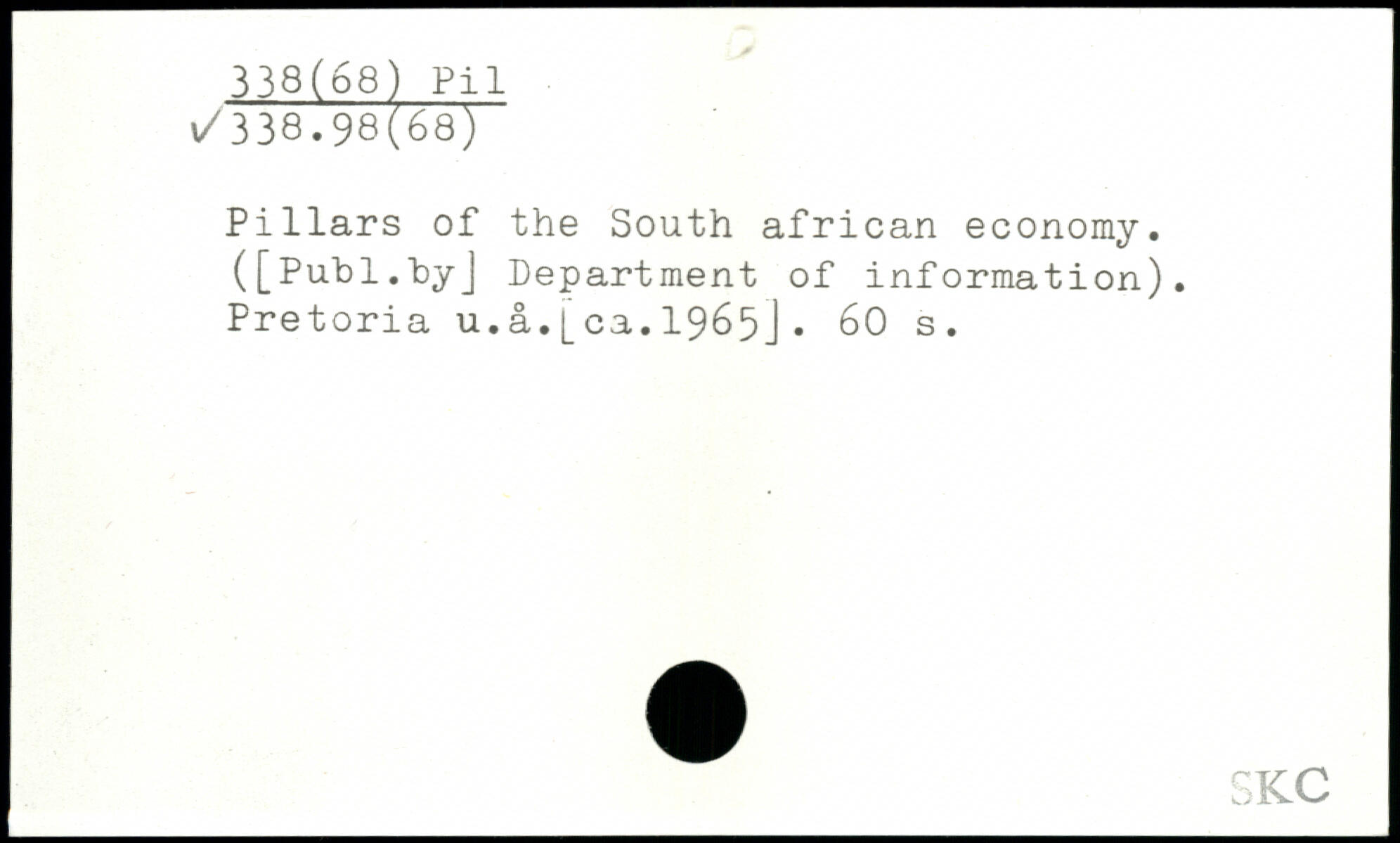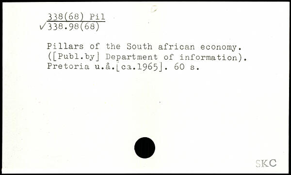Pillars of the South african economy. ([Publ.hyJ Department of information). Pretoria u. a. j_ ca. 1965].