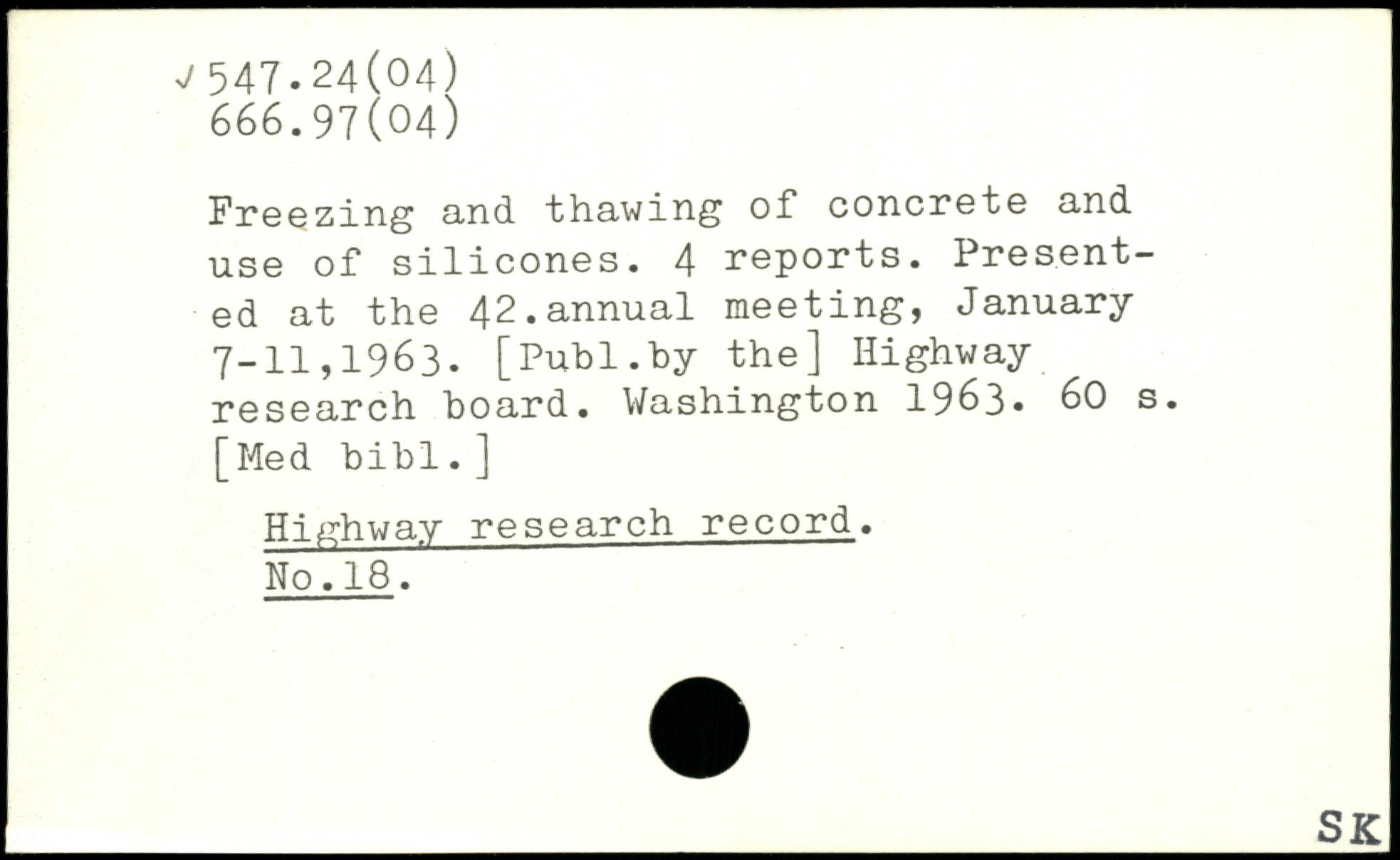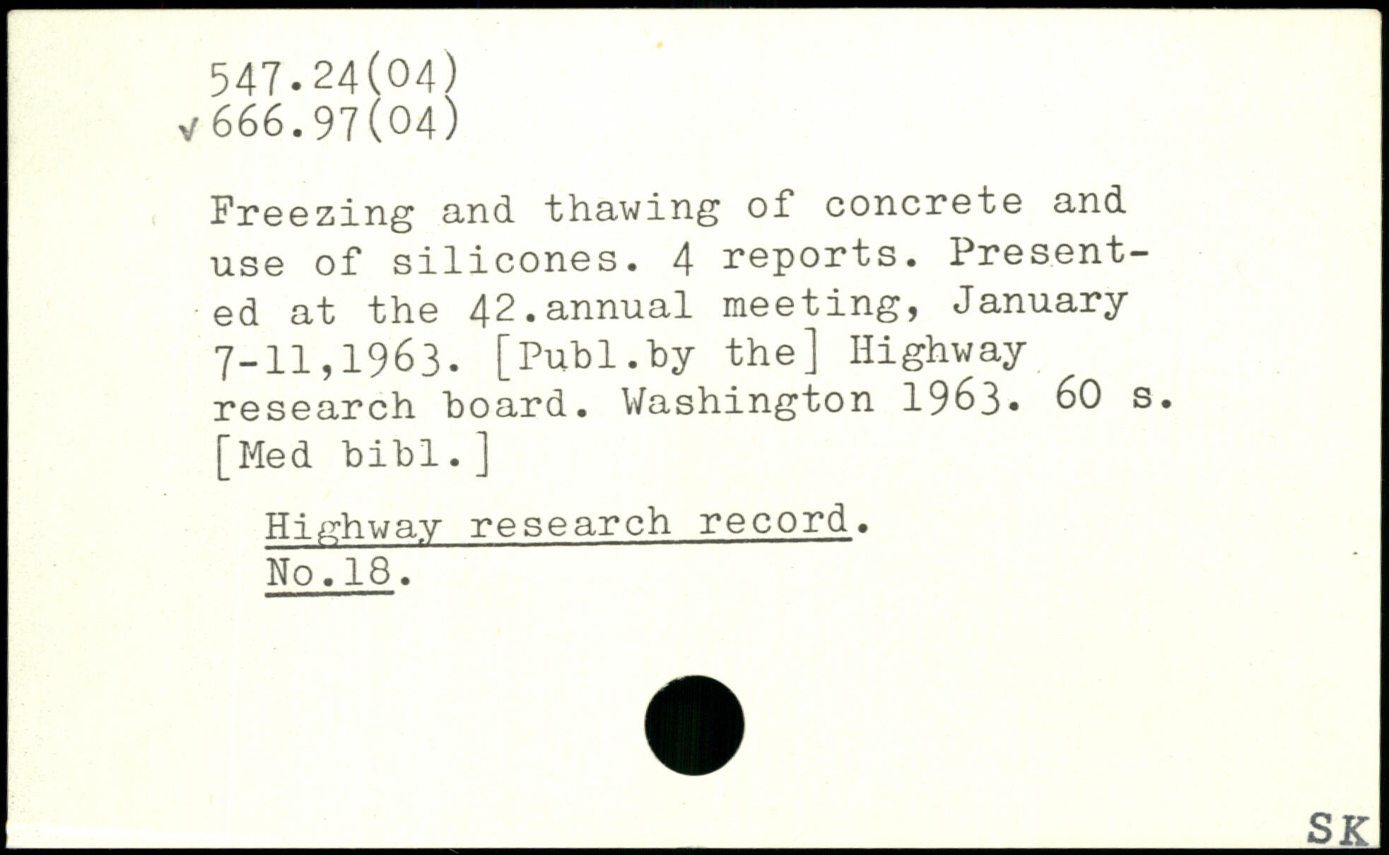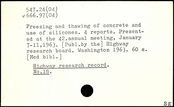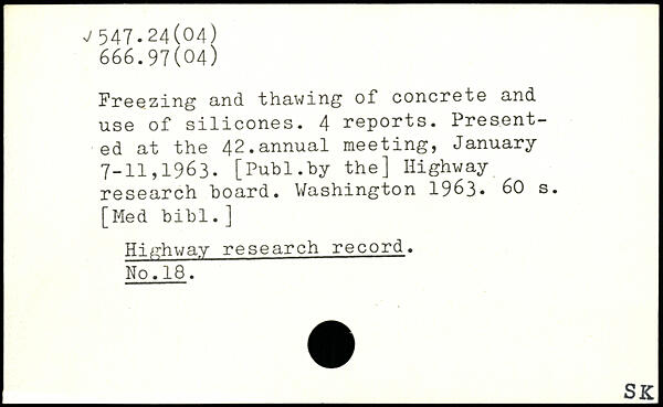 Freezing and "thawing of. concrete and use of silicones. 4 reports. Presented at the 42.annual meeting, January 7-11,1963.