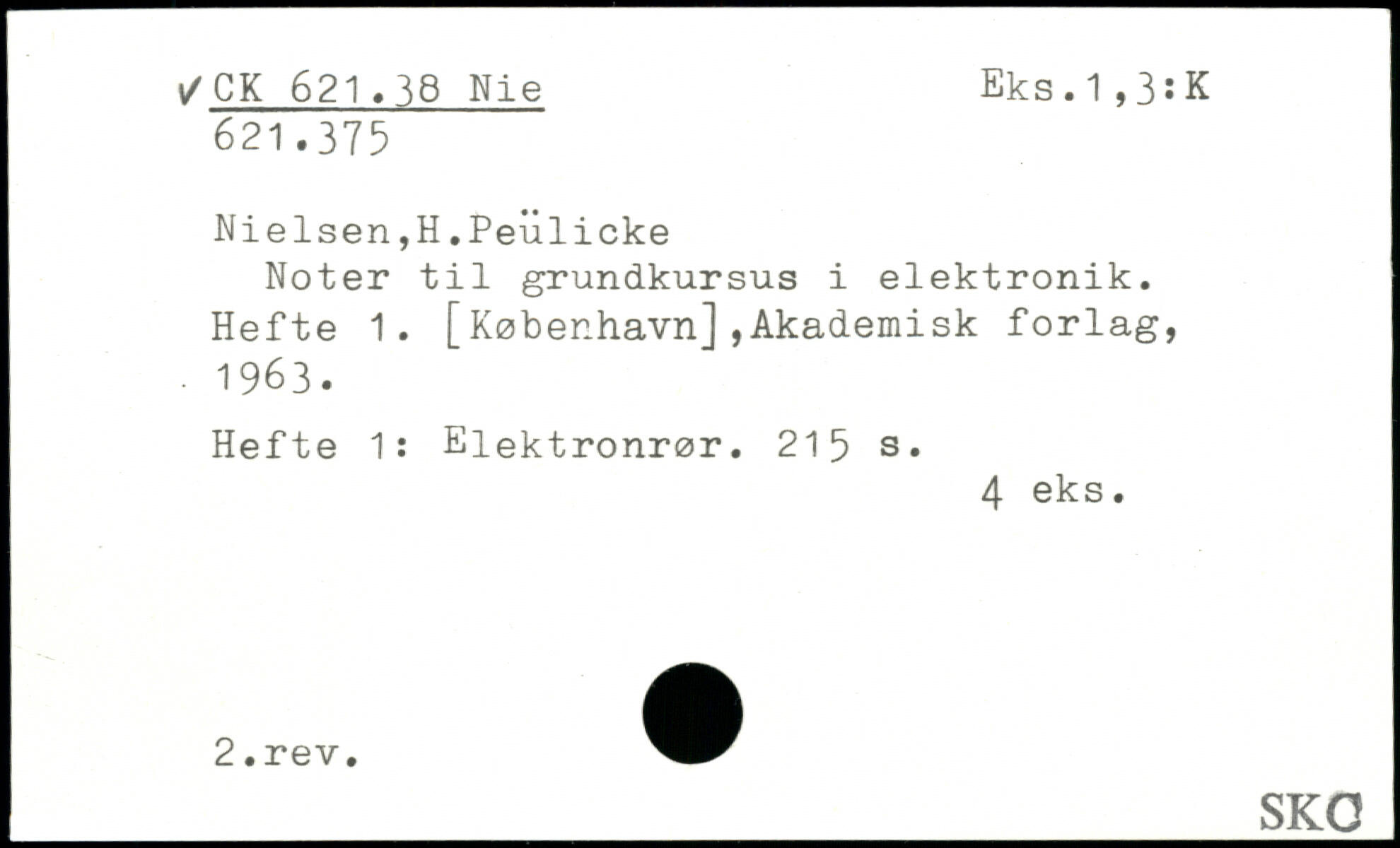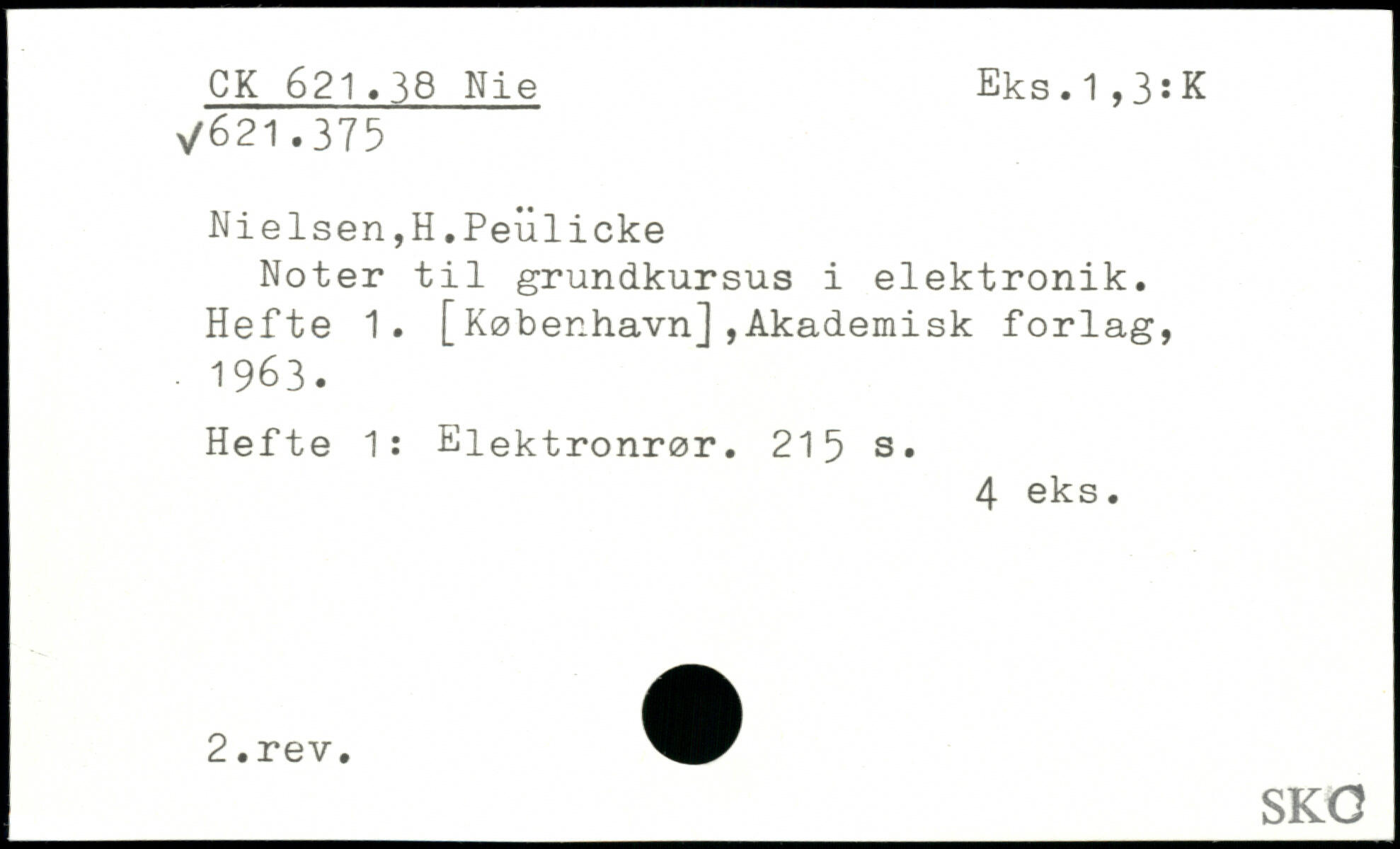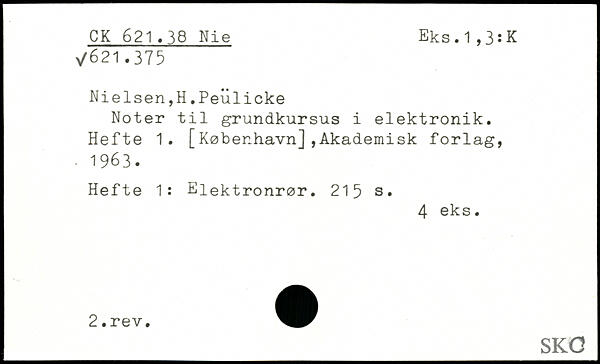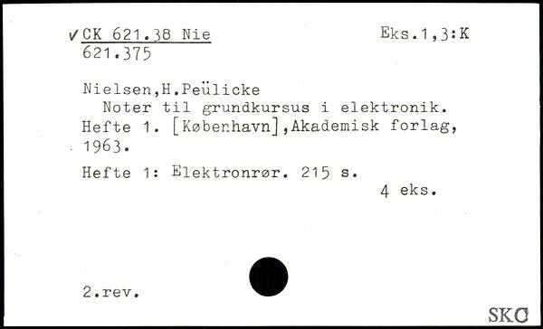 Nielsen,H.Peulicke Noter til grundkursus i elektronik. Hefte 1. [København],Akademisk forlag, ■ 1963. Hefte 1: Elektronrør.