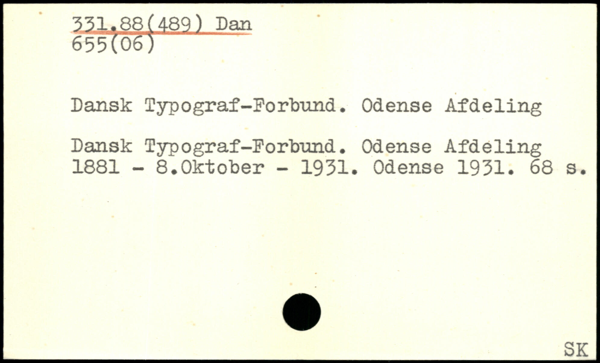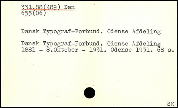 Dansk Typograf-Forbund. Odense Afdeling Dansk Typograf-Forbund. Odense Afdeling 1881 - 8.Oktober - 1931. Odense 1931.