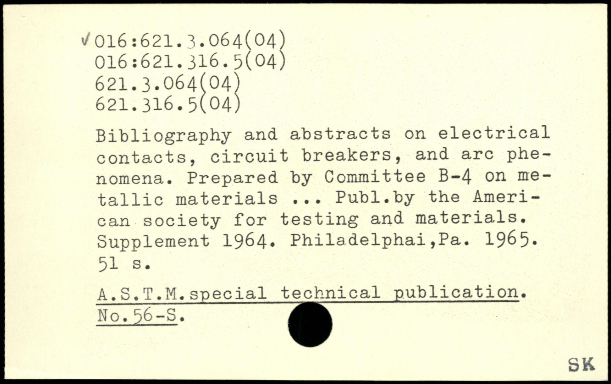 Bibliography and abstracts on electrical contacts, circuit breakers, and arc phenomena. Prepared by Committee B-4 on metallic materials ...