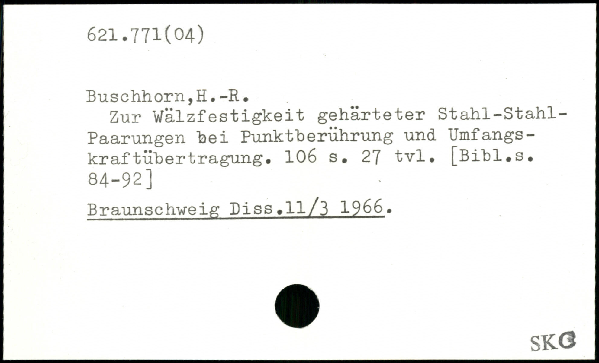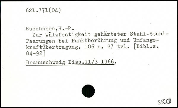 Zur Wälzfestigkeit gehärteter Stahl-Stahl-Paarungen hei Punktberührung und Umfangs-kraftübertragung.