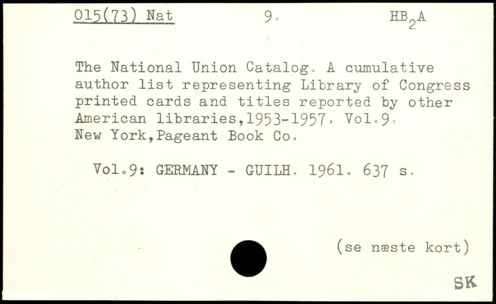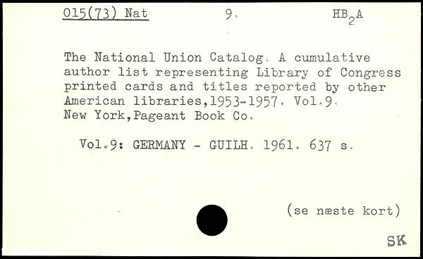 The National Union Catalog. A cumulative author list representing Library of Congress printed cards and titles reported by other American libraries,1953“1957, Vol,9< New York,Pageant Book Co. Yolc9i GERMANY - GUILH. 1961