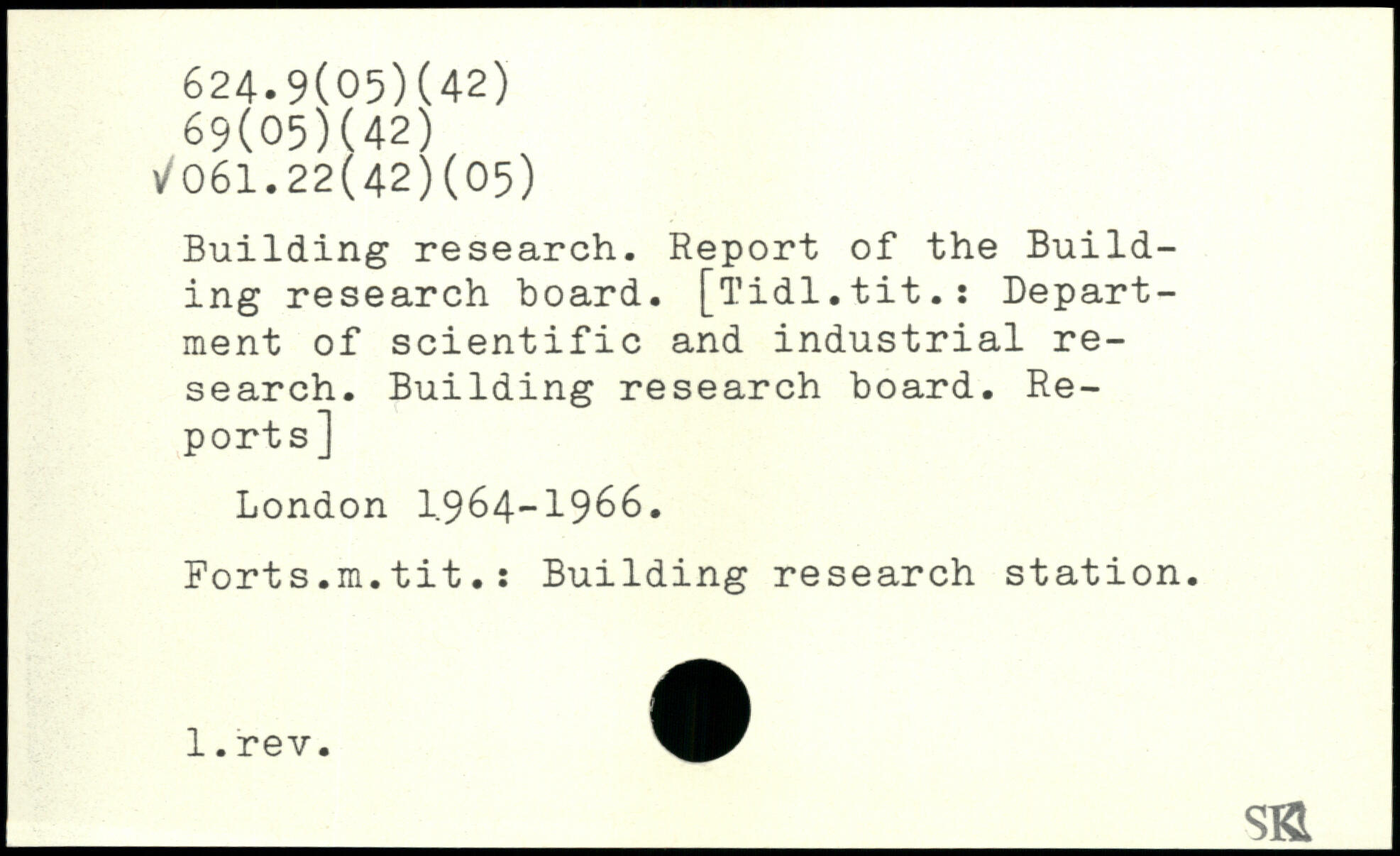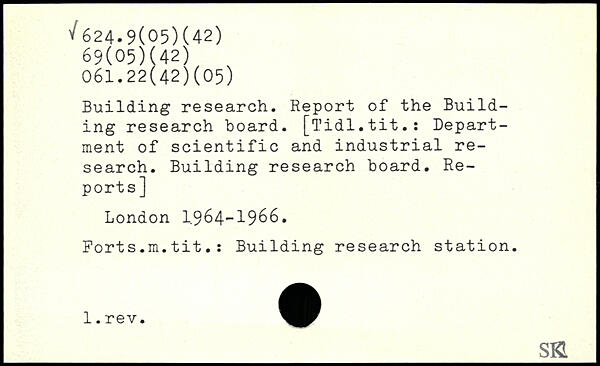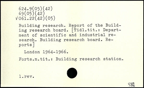Building research. Report of the Building research board. [Tidl.tit.: Department of scientific and industrial research. Building research board. Reports] London I.964-1966. Forts.m.tit.: Building research station.