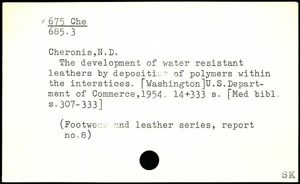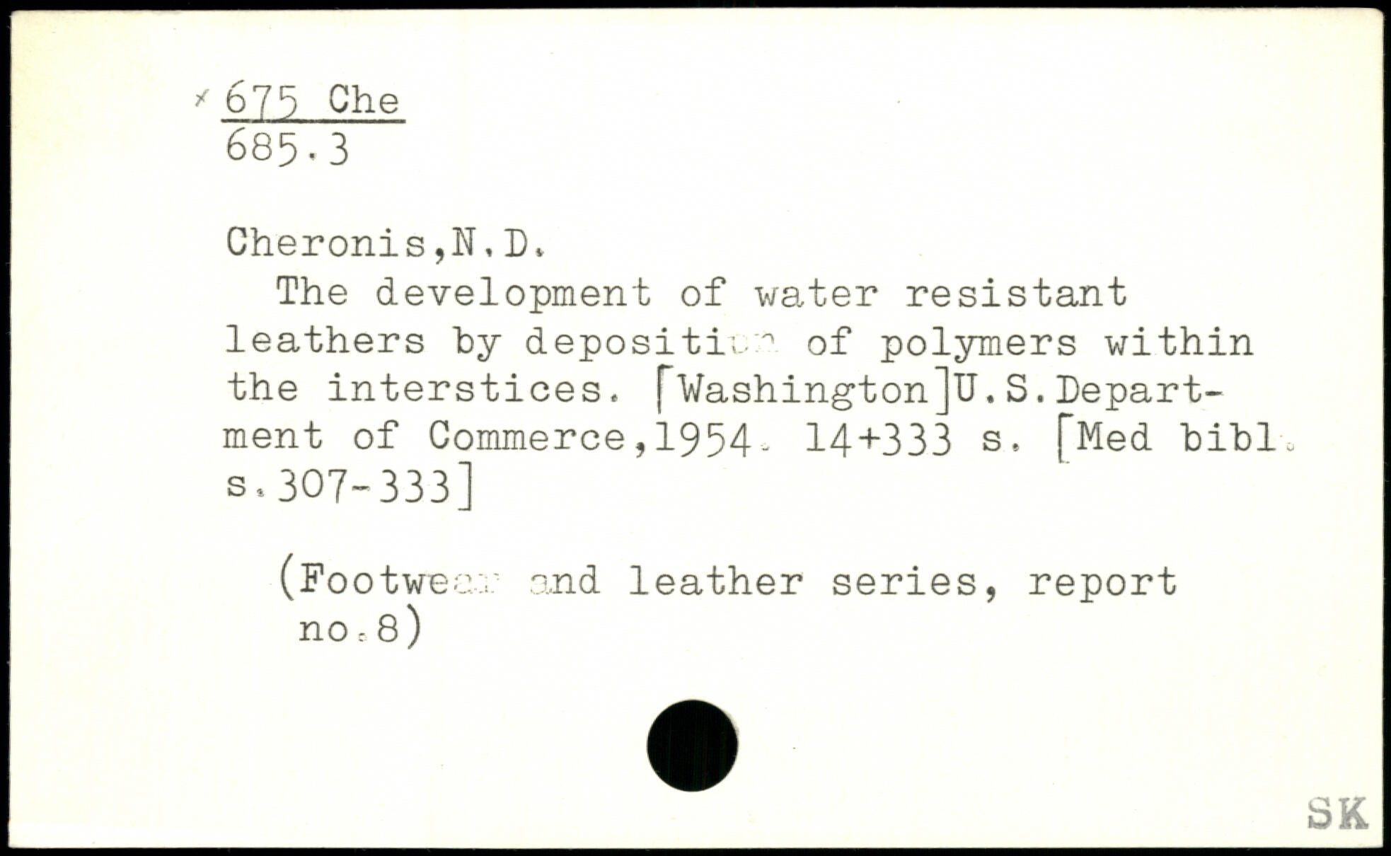 Cheronis,N,Dv The development of water resistant leathers by deposition of polymers within the interstices. f¥ashington]U.S.Department of Commerce,1954-
