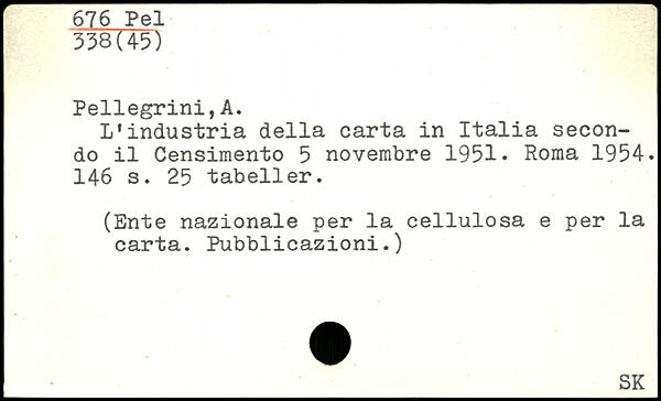 L'industria della carta in Italia secon-do il Censimento 5 novembre 1951
