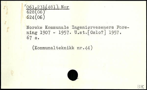 Norske Kommunale Ingeniørveseners Forening 1907 - 1957. U.st.fOslo?] 1957.