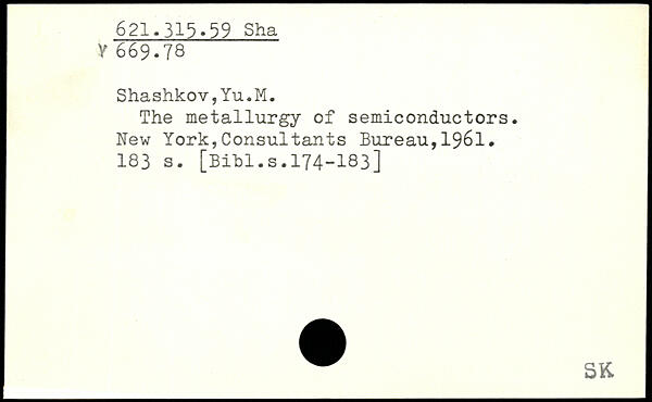Shashkov,Yu.M. The metallurgy of semiconductors.