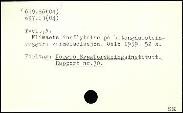 Klimaets innflytelse på betonghulstein-veggers varmeisolasjon, Oslo 1959®