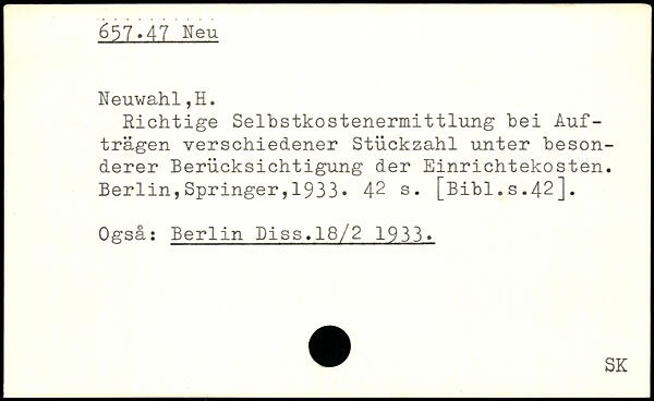 Richtige Selbstkostenermittlung bei Aufträgen verschiedener Stückzahl unter besonderer Berücksichtigung der Einrichtekosten.