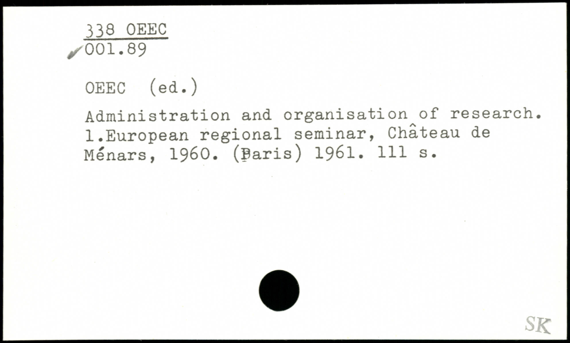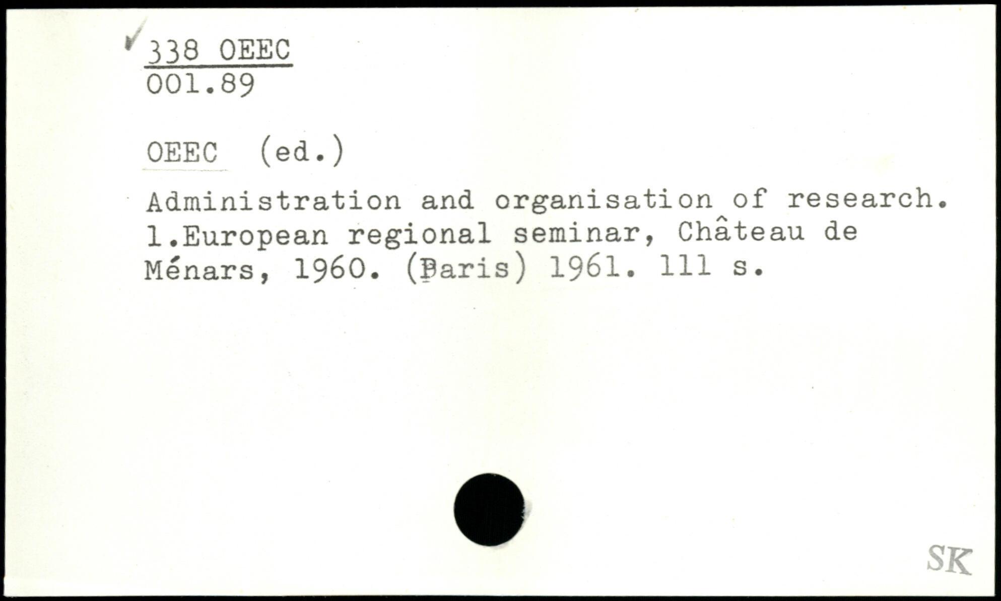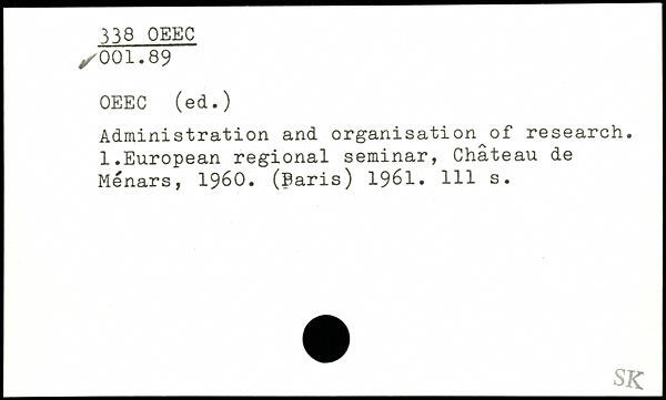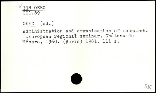 Administration and organisation of research. l.European régional seminar, Château de Menars, 1960. (Paris) 1961.