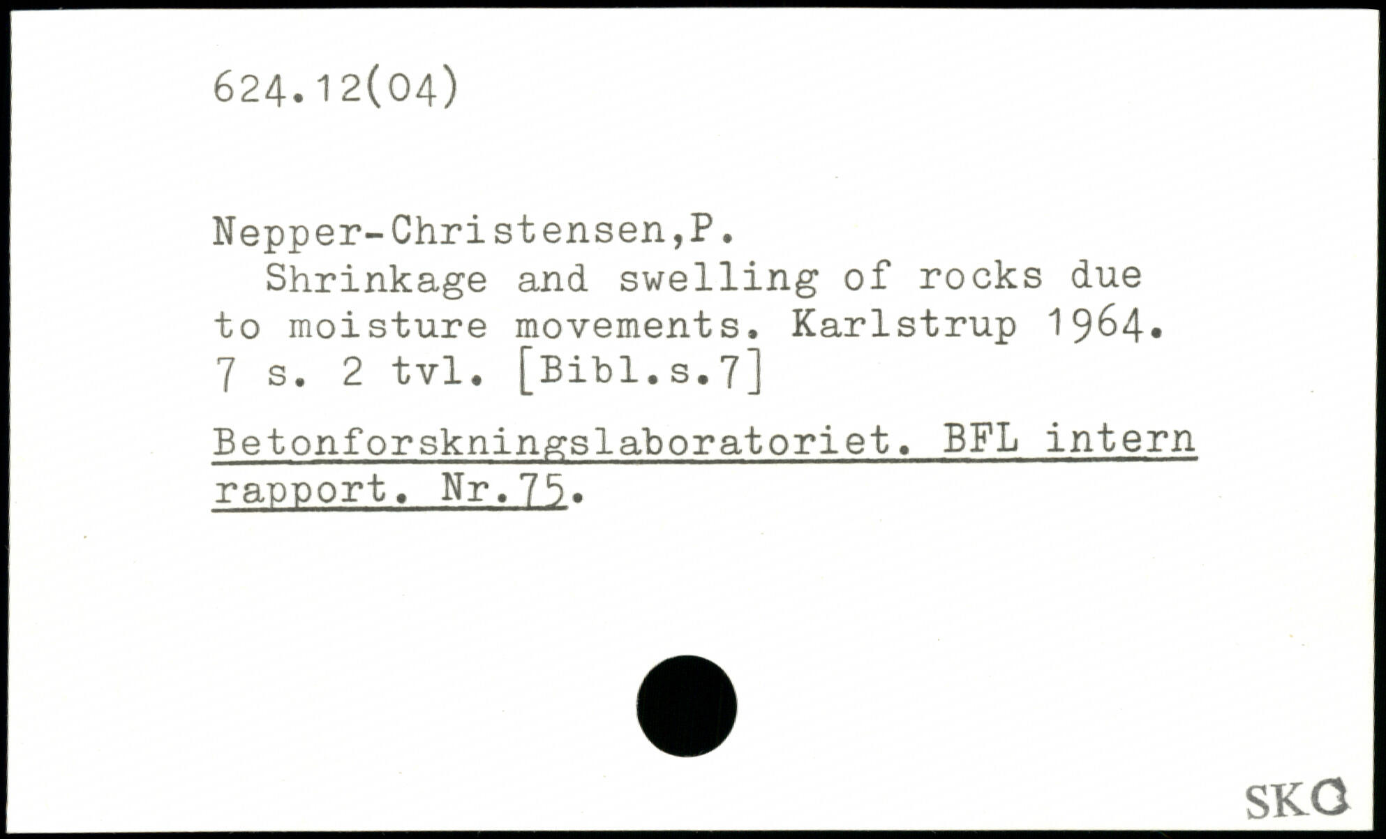 Shrinkage and swelling of rocks due to moisture movements. Karlstrup 1964