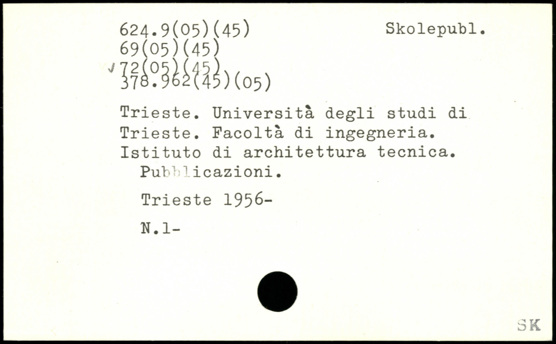 'mMno Trieste. Università degli studi di Trieste. Facoltà di ingegneria. Istituto di architettura tecnica. PubMicazioni. Trieste 1956-