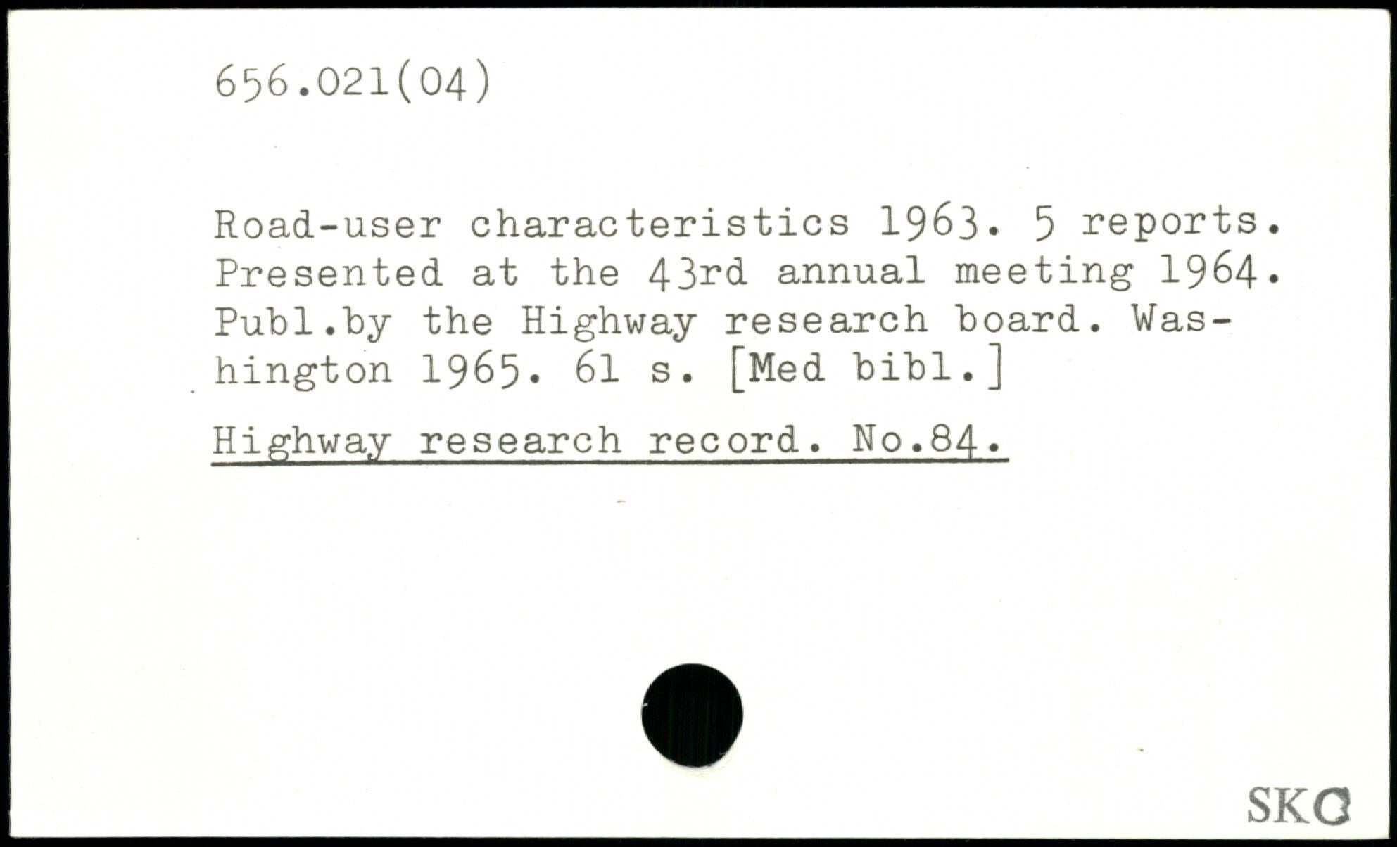 Road-user characteristics 1963, 5 reports. Presented at the 43nd annual meeting 1964