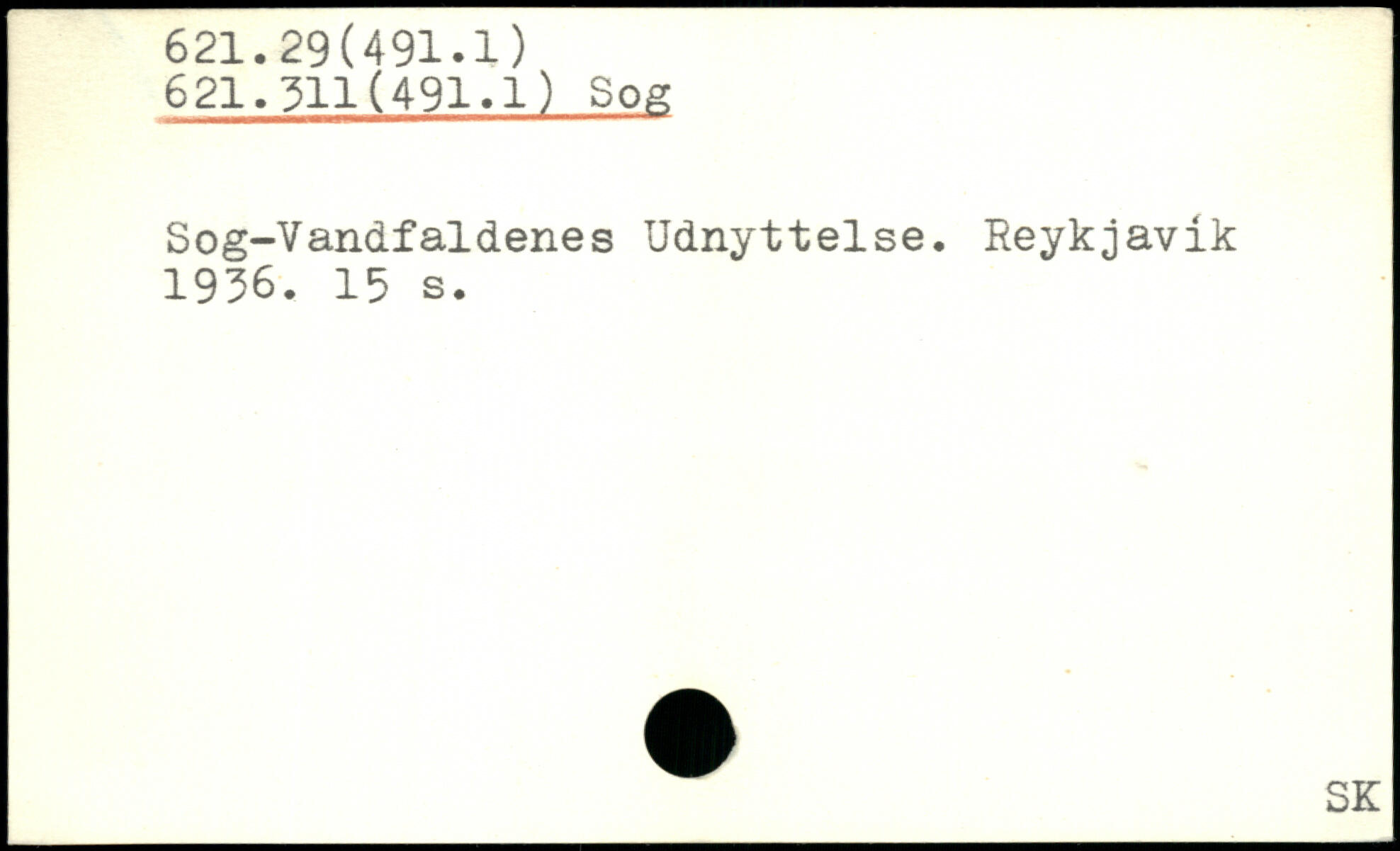 Sog-Vandfaldenes Udnyttelse. Reykjavik 1936.