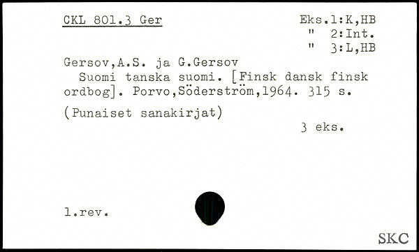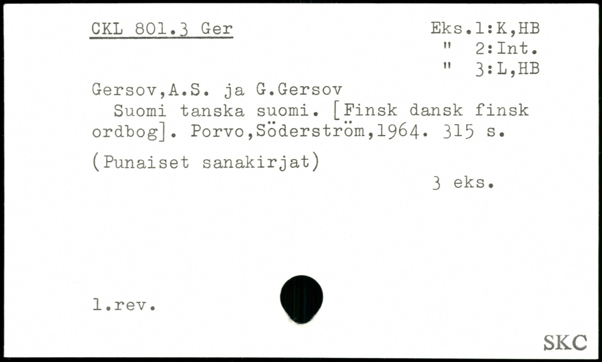 Gersov,A.S. ja G.Gersov Suomi tanska suomi. [Finsk dansk finsk ordbog].