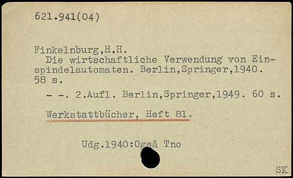 Finke1nburg,H.H. Die wirtschaftliche Verwendung' von Ein-spindelautomaten.