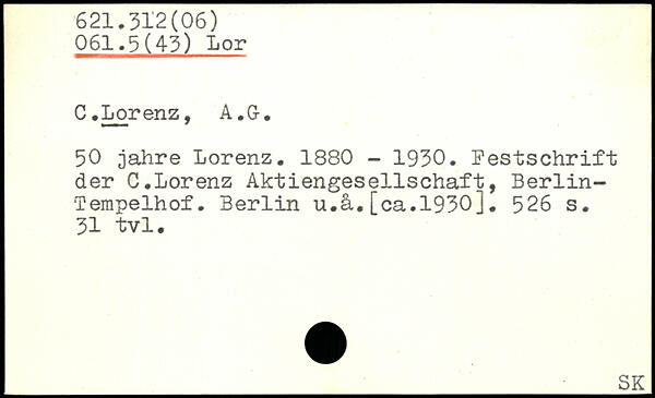 C.Lorenz, A.G-. 50 jahre Lorenz. 1880 - 1930. Pestschrift der C.Lorenz Aktiengesellschaft, Berlin-Tempelhof. Berlin u.ä.[ca.1930].