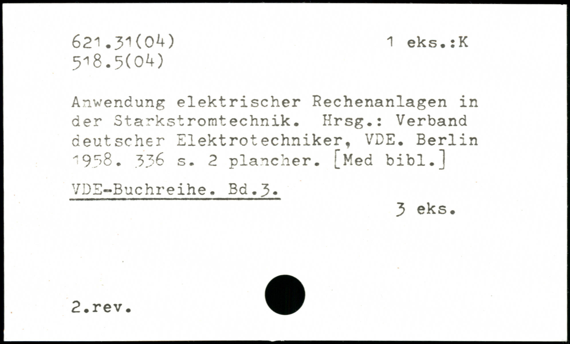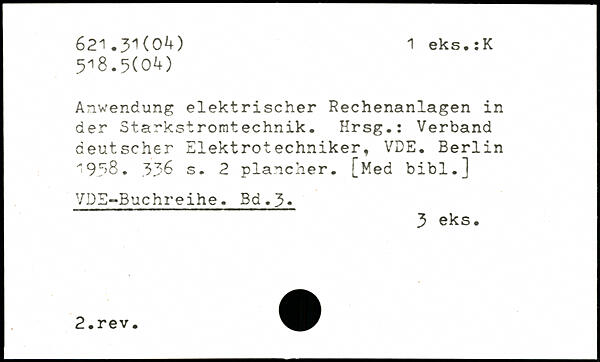 Anwendung elektrischer Rechenanlagen in der Starkstromtechnik. Hrsg.: Verband deutscher Elektrotechniker, VDE. Berlin ■'958.