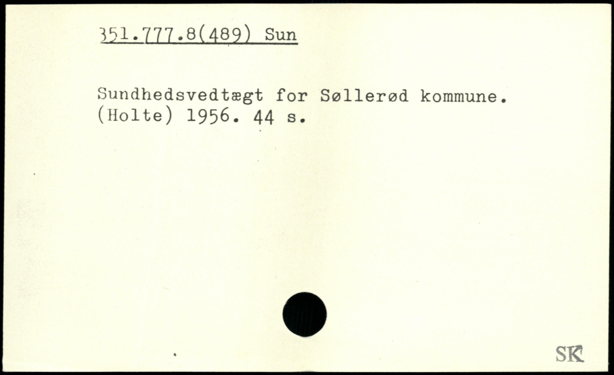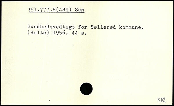 Sundhedsvedtægt for Søllerød kommune. (Holte) 1956.