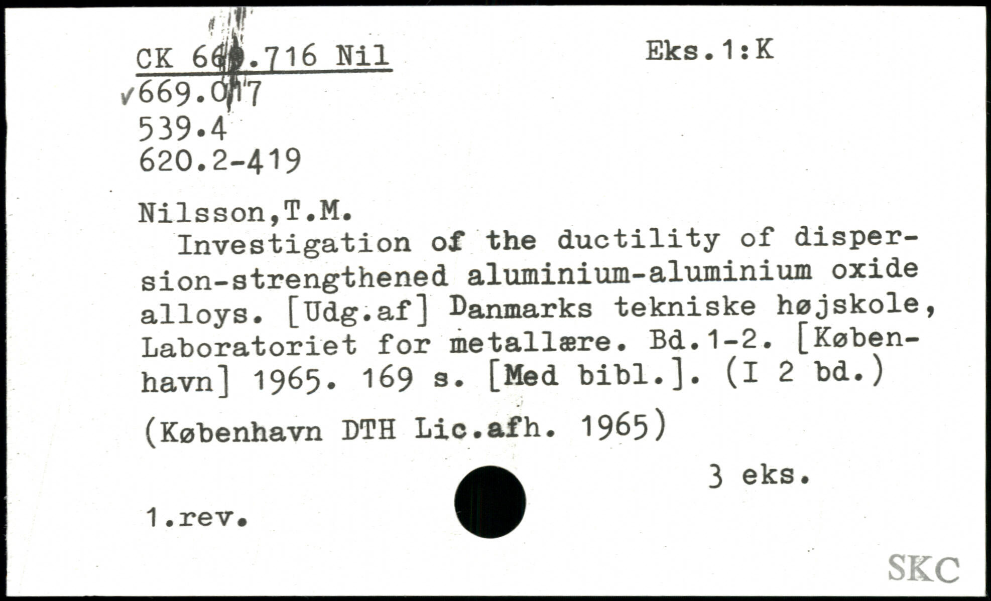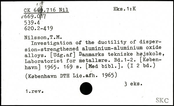 Investigation of the ductility of dispersion-strengthened aluminium-aluminium oxide alloys. [Udg.af] Danmarks tekniske højskole, Laboratoriet for metallære.