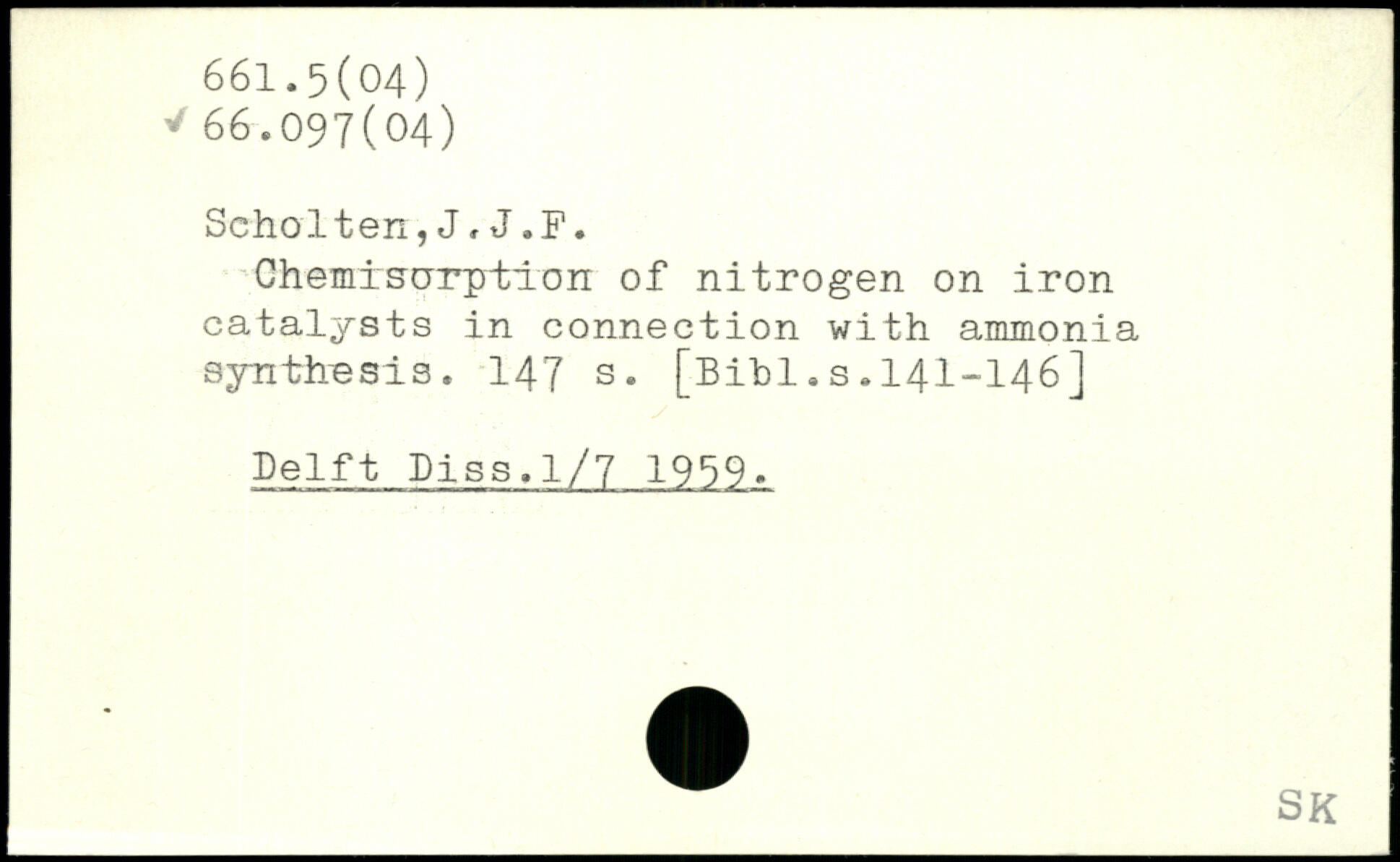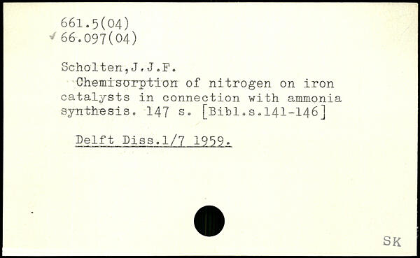Chemisorption of nitrogen on iron catalysts in connection with ammonia synthesis. 147 3. [Bihl.s.I4I-I46] Delft hiss.1/7 1959.