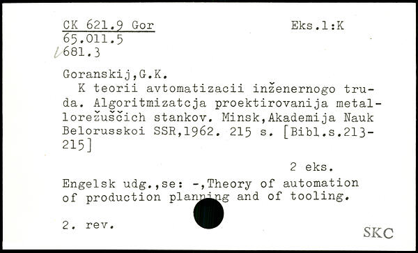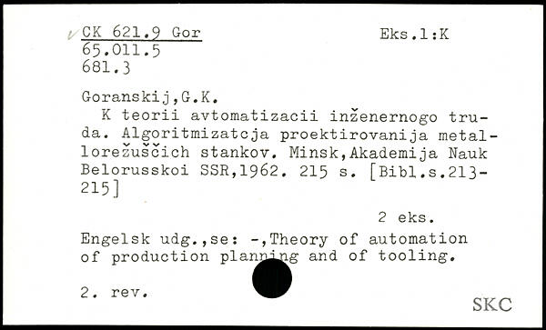 Sted: Algoritmizatcja proektirovanija metal-lorezuscich stankov, Minsk
