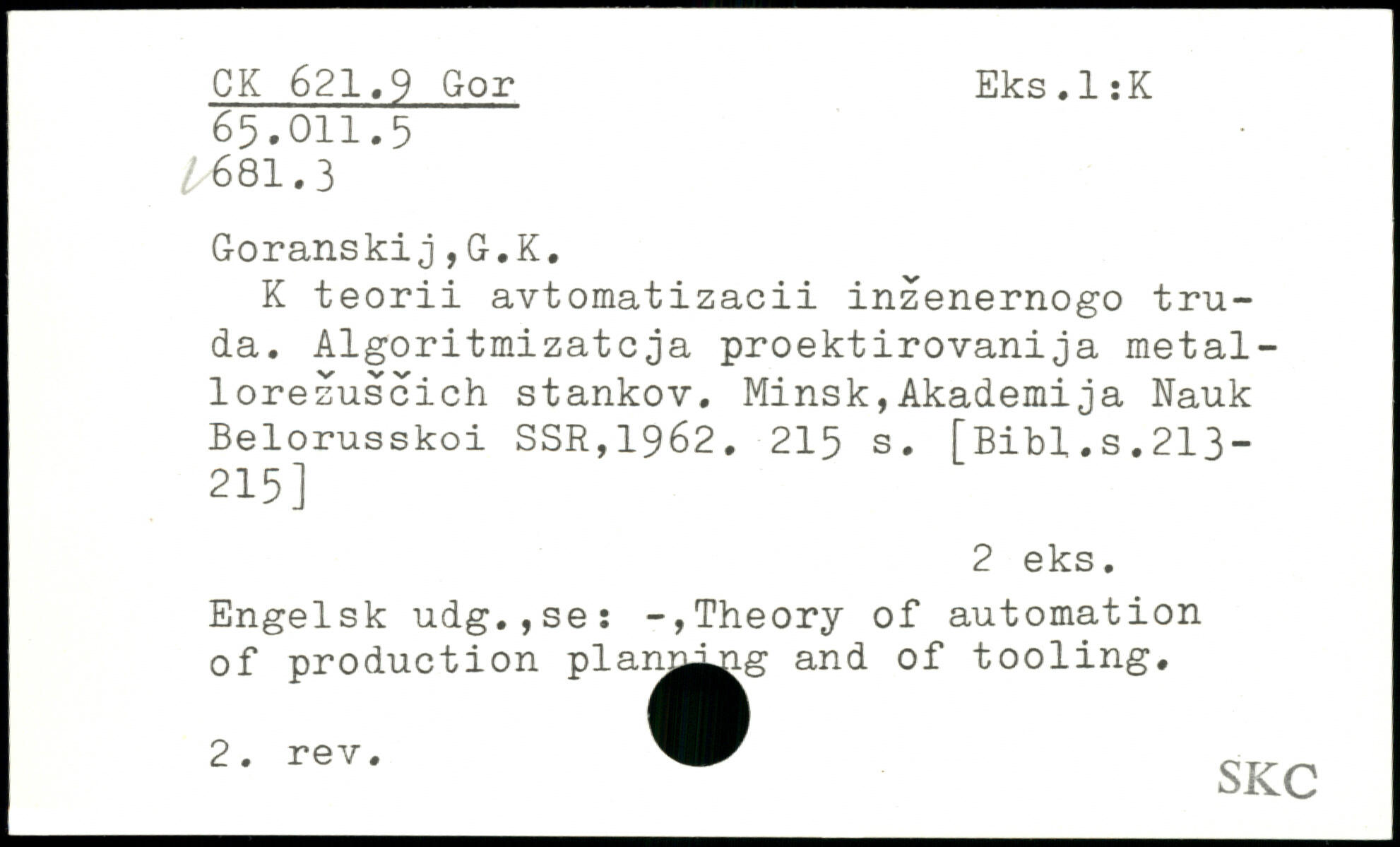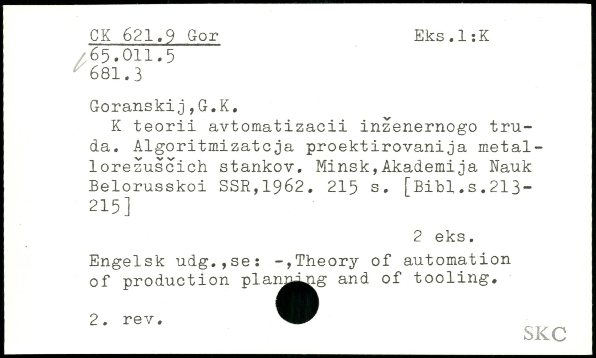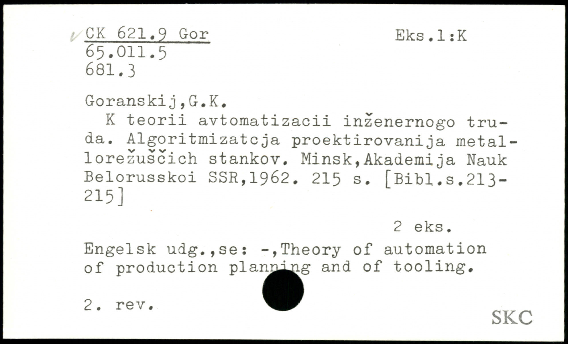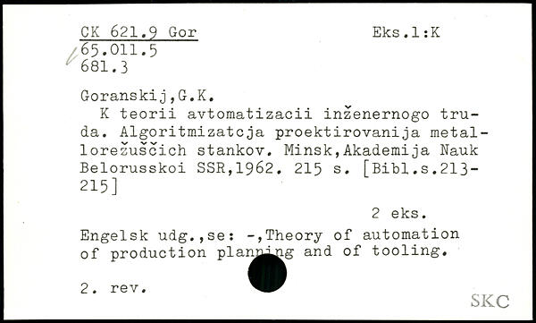 UDK: 621.9 Gor, 65.011.5, 81.3