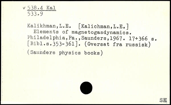 Kalikhman,L.E. [Kalichman,L.E.] Elements of magnetogasdynamics.