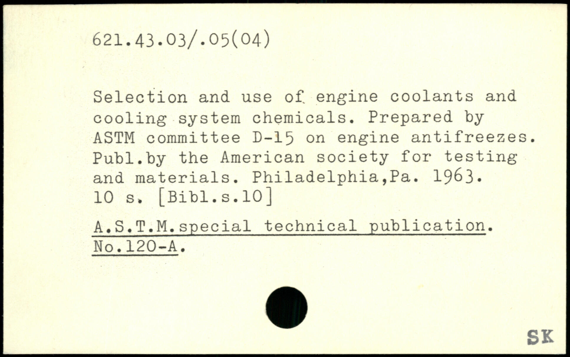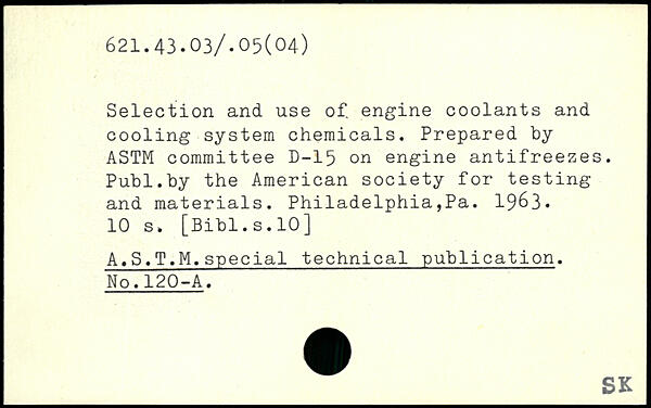 Selection and use of. engine coolants and cooling system chemicals. Prepared by ASTM committee D-15 on engine antifreezes.