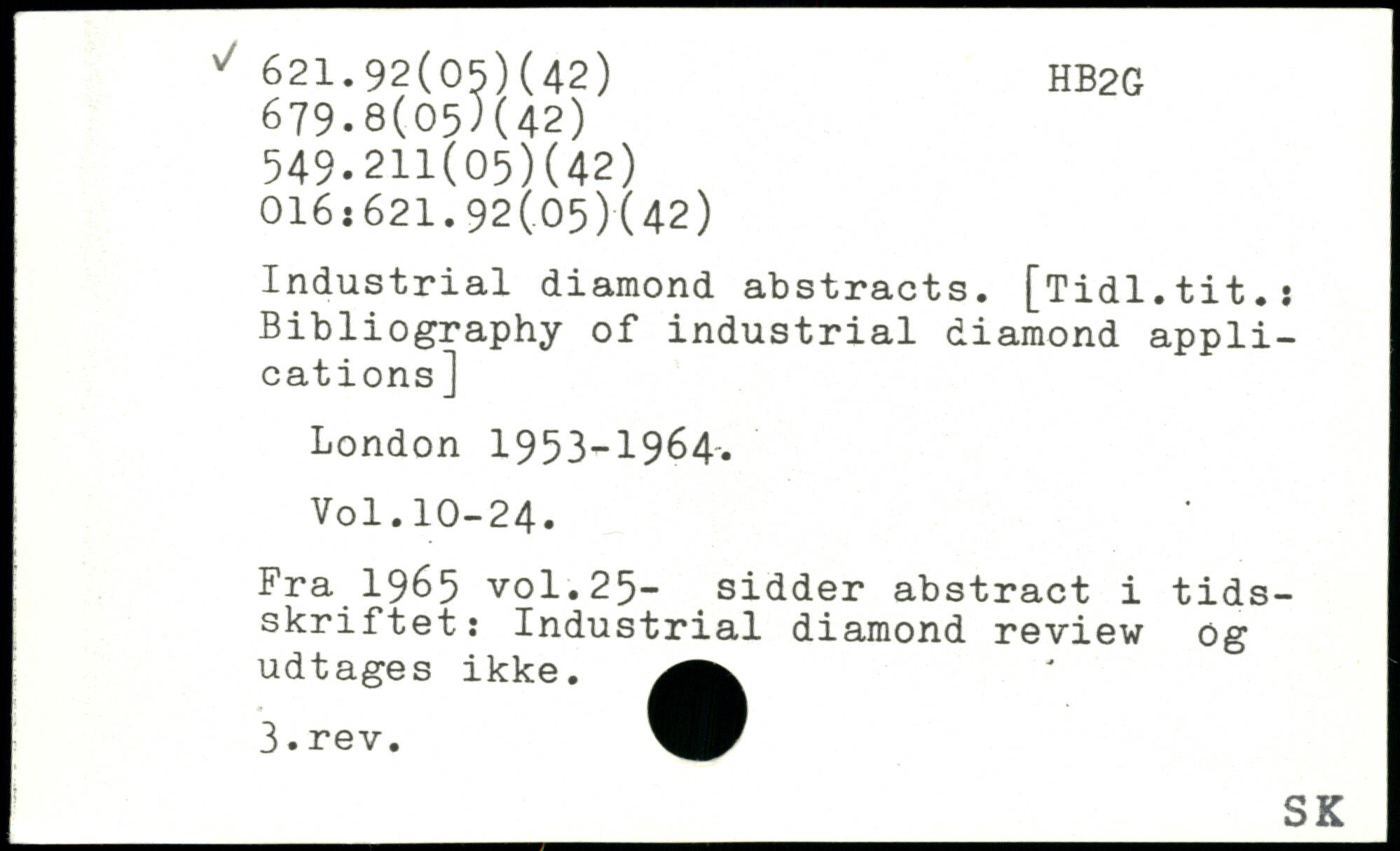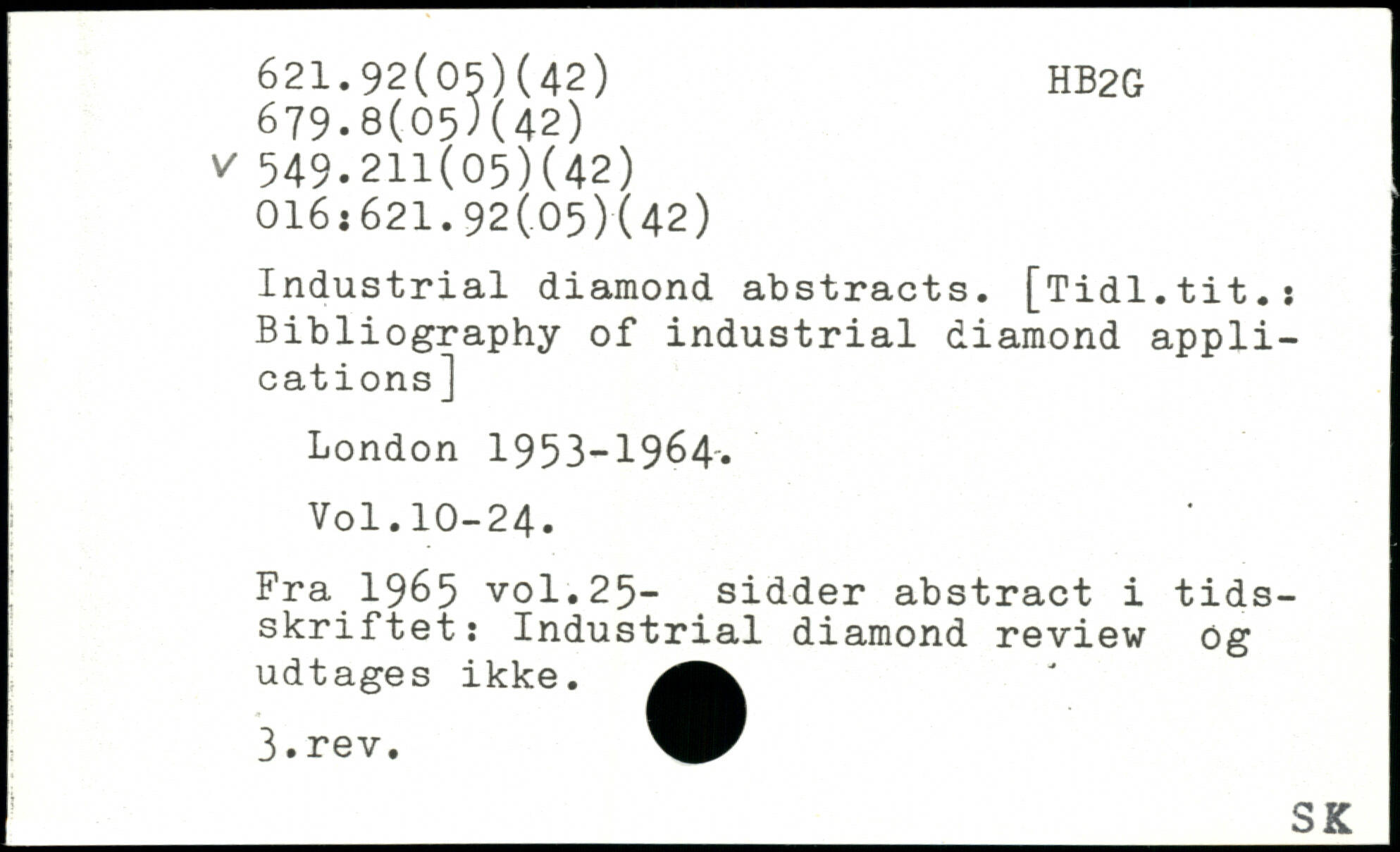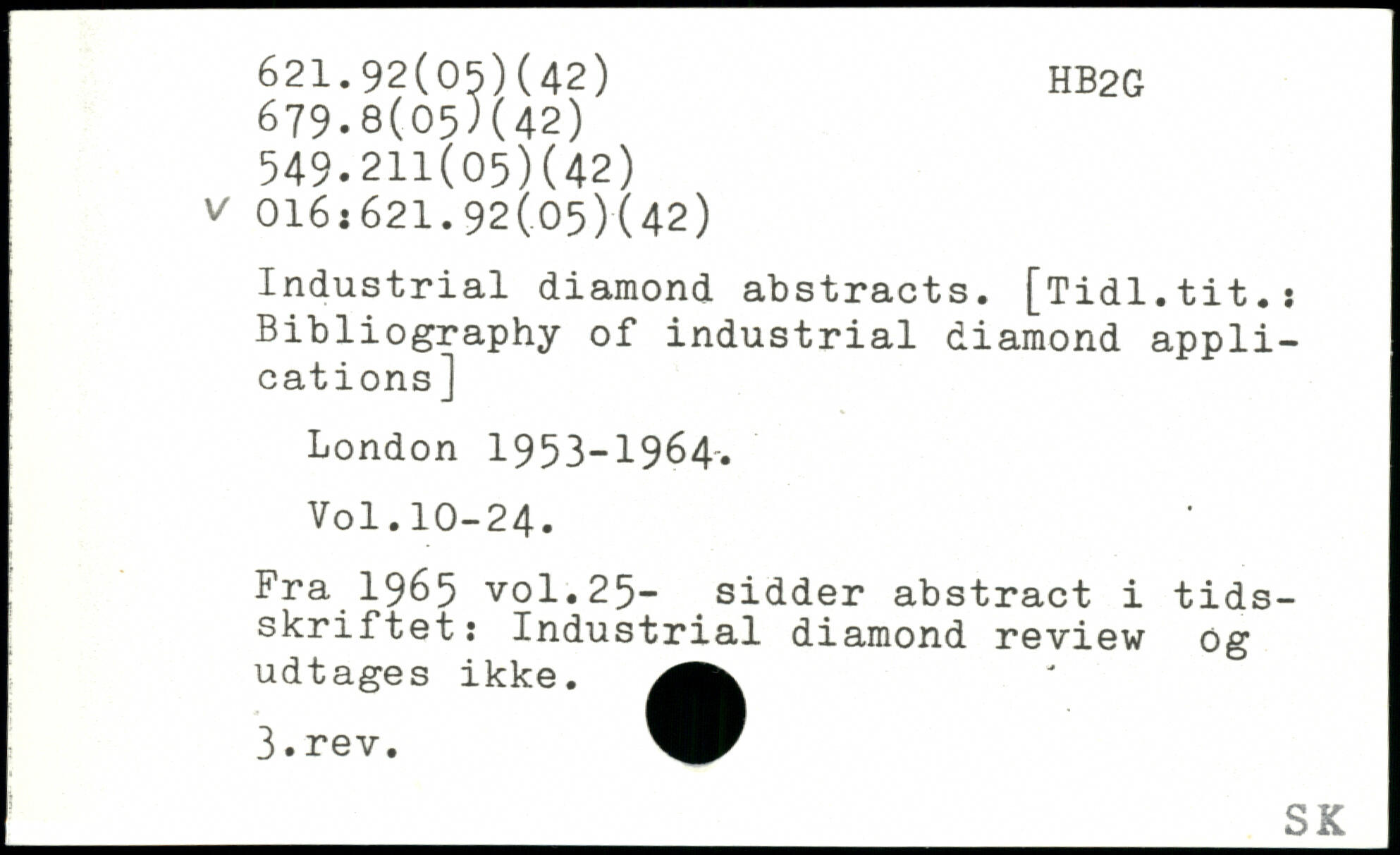 Industrial diamond abstracts. [Tidl.tit.: Bibliography of industrial diamond applications]