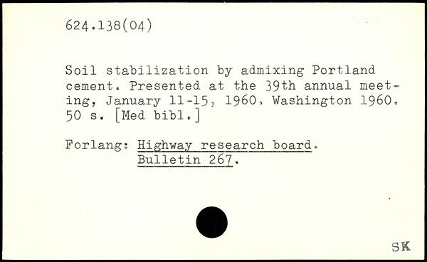 Soil stabilization by admixing Portland cement. Presented at the 39th annual meeting, January 11-15? 1960