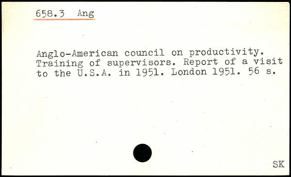 Anglo-American council on productivity. Training of supervisors. Report of a visit to the U.S.A. in 1951.