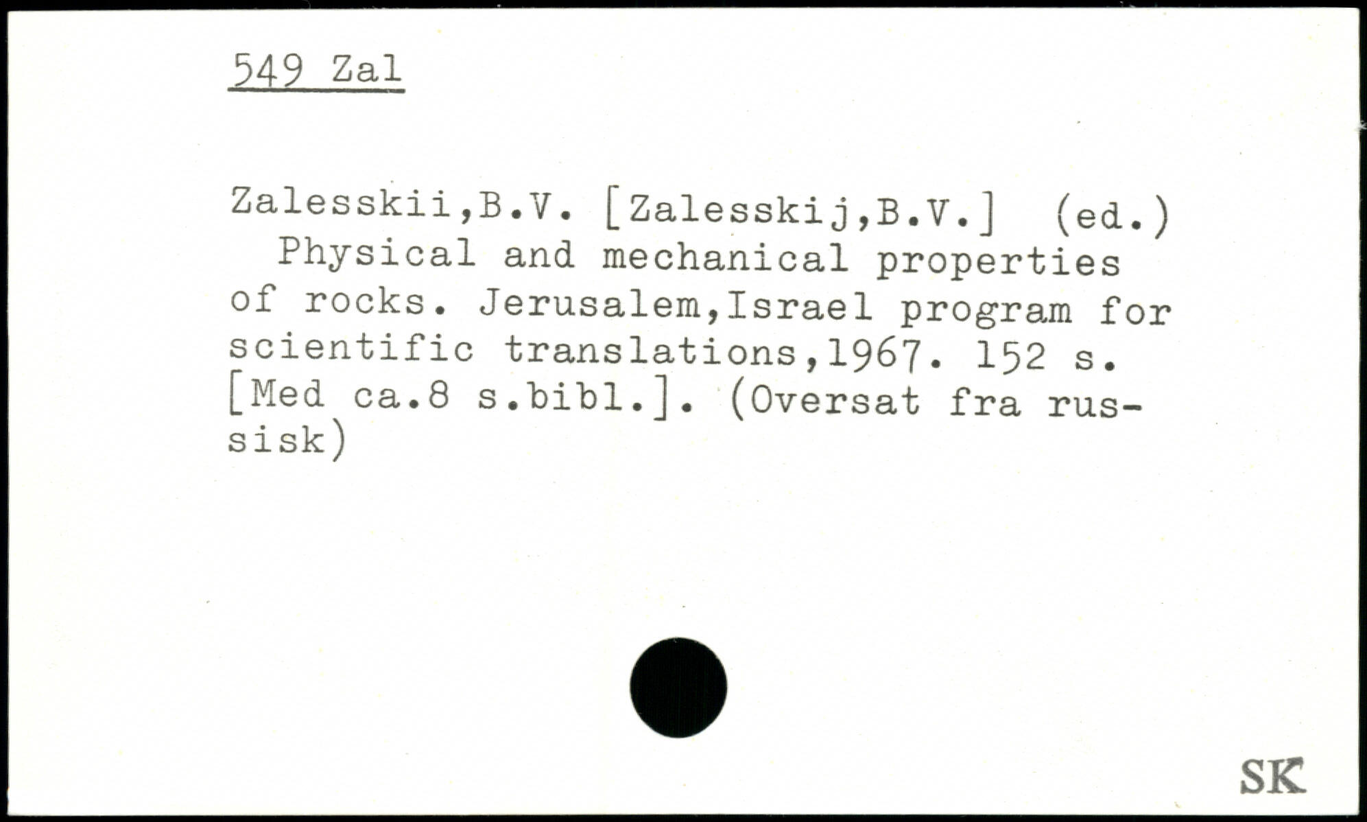 Zalesskii,B.V. [Zalesskij,B.V.J (ed.) Physical and mechanical properties of rocks. Jerusalem,Israel program for scientific translations,1967.